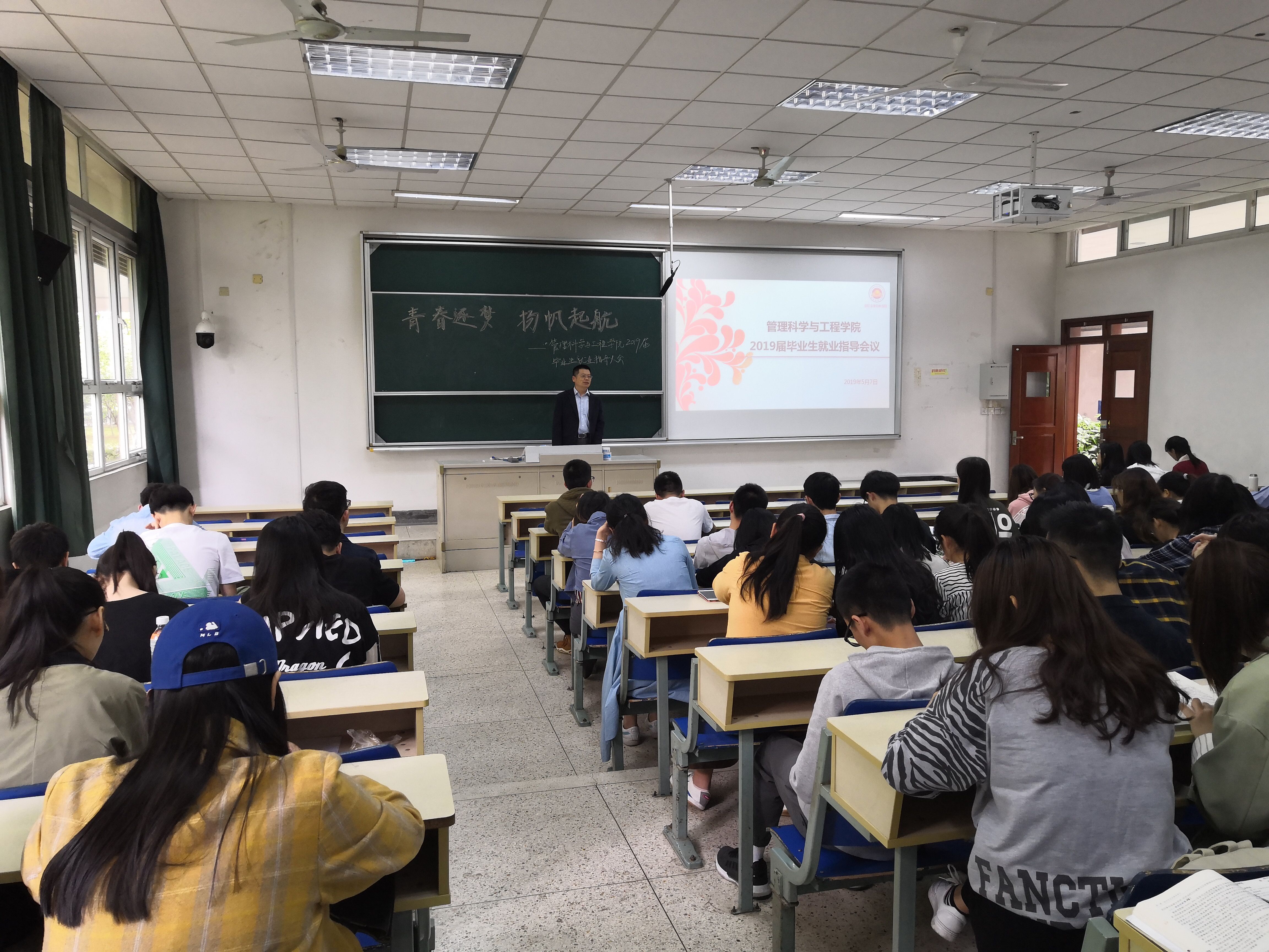 5月7日中午,williamhill英国在德济楼113教室举办了2019届毕业生就业指导会议。学院党总支书记张圣兵教授、管理科学系主任于荣老师、辅导员郑媛媛老师和2019届毕业生参加了会议。