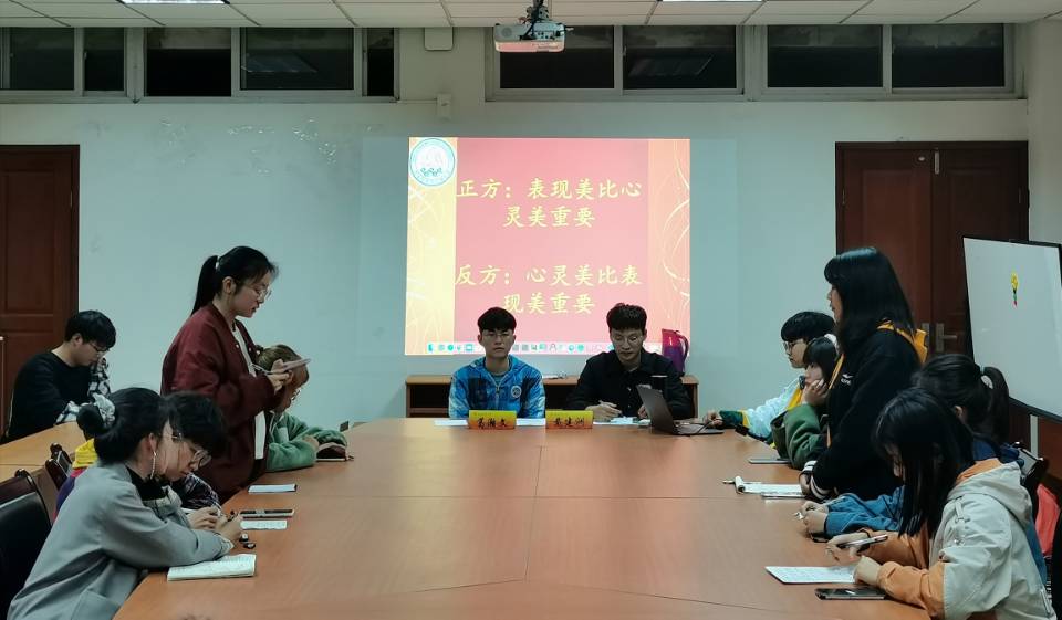 第一组队伍的辩题是“美是主观感受的存在还是客观感受的存在?”双方辩手就本方论点展开激烈对辩,旁征博引,侃侃而谈,激烈的交锋使场下观众激情澎湃。第二组队伍的辩题是“美丽是福还是祸?”双方辩手各自从“美丽”的释义出发,延伸至对大自然中的美丽带来的福祸的深度思考,双方你来我往,互不相让,比赛在自由辩论环节达到了高潮,同时引发了场下观众对“当狂热地追求美丽时就变成了一种祸”的深刻反省。第三组的辩题是“外表美重要还是心灵美重要”这组辩题突出了内在美与外在美的对比,双方辩手从各自角度进行阐述,让观众了解了外表美的形式与心灵美的内涵所在,两者各美其美,美美与共。三组辩论成员准备充分,积极踊跃发言,辩论环节刺激紧张,高潮迭起,评委们对各个小组的表现都给予了高度评价。