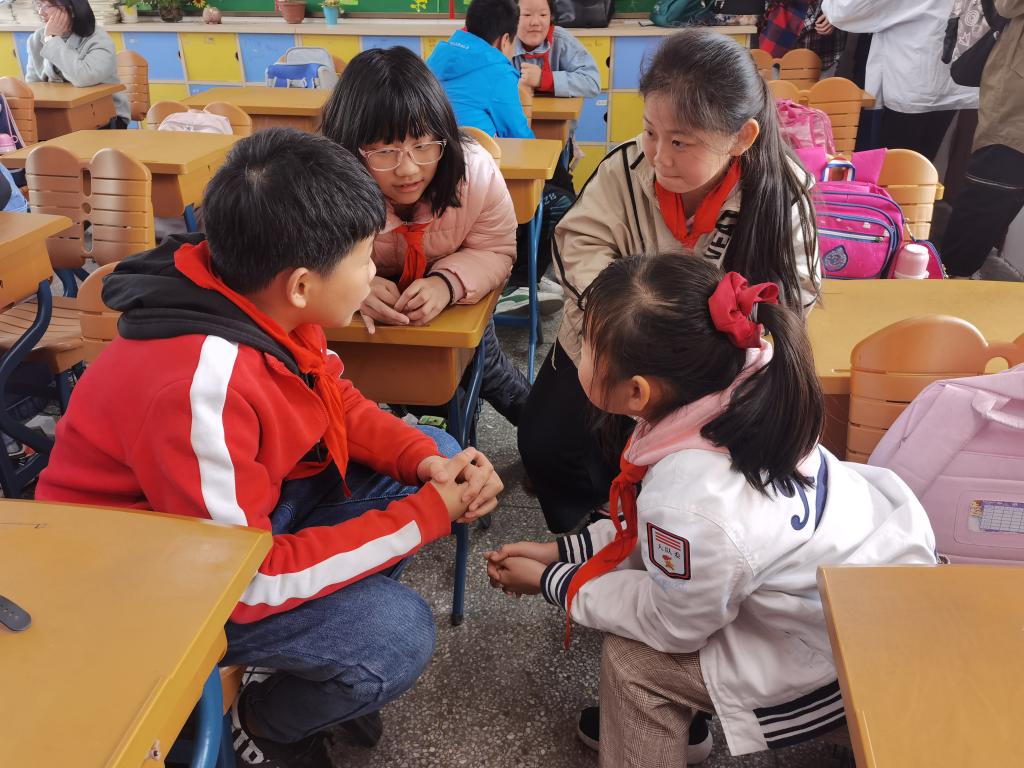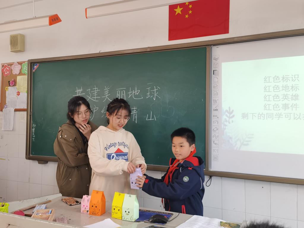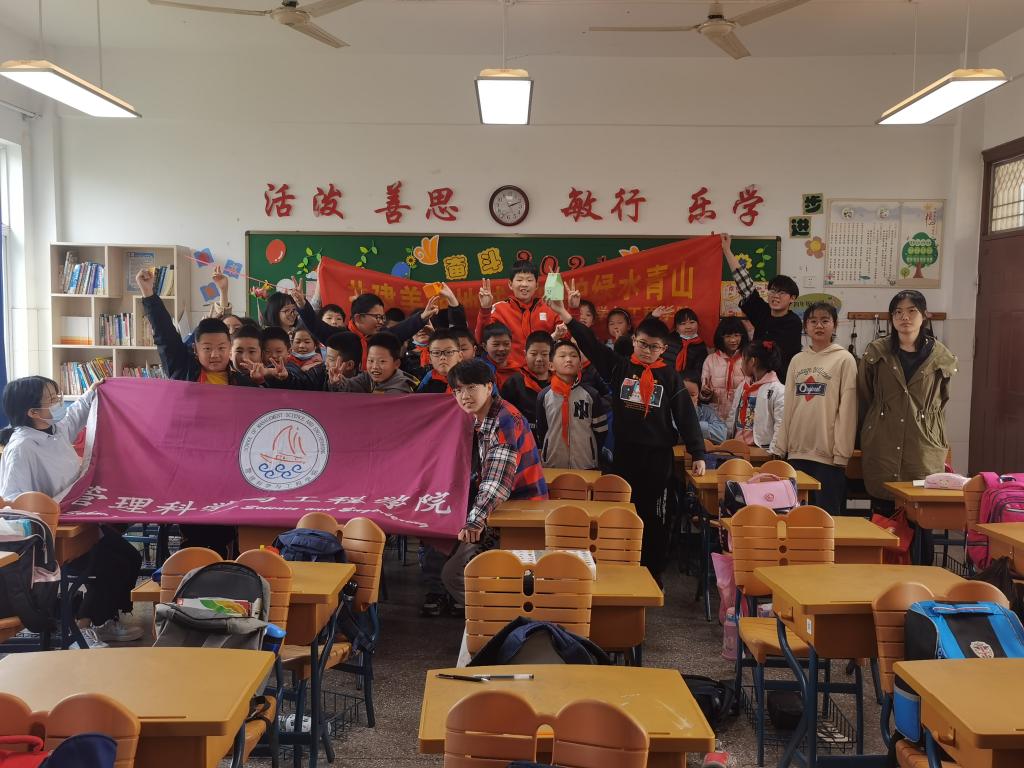 琳琅满目的红色文创产品,充满未知惊喜的自制盲盒,生动形象的红色故事……这些都是管理科学与工程学院“小彩虹”志愿者服务队与小学生们共同互动的环节。期间,小学生们不仅体会到互动的乐趣,还加深了对党史和环境保护的认识。