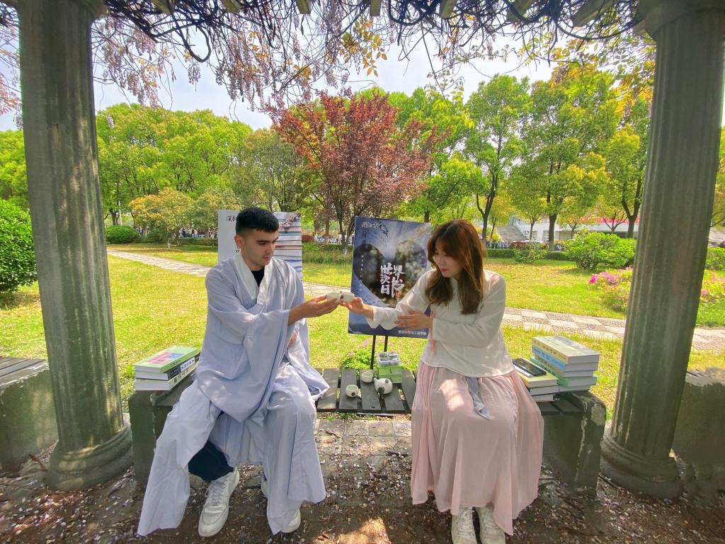 “金菊盏盏,秋风送爽;汉服飘飘,子曰诗云”。4月15日,在第26个世界读书日到来之际,英国威廉集团的留学生们和中国学生换上了心爱的汉服,他们手捧一本书,品上一杯香茗,微风吹佛,罗衣飘飘,谈笑晏晏的他们在紫藤花架下成为校园里最美的风景。