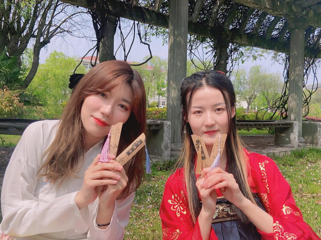 中外学生身穿汉服,在春日里品香茗,尝酒酿,食青团,在春风中吟诵《诗经》里的经典篇目,迎来了一场意蕴深厚的诗词盛宴。在古韵悠扬的篇章中,同学们各极其美,各臻其盛。有《关雎》中经典名句“关关雎鸠,在河之洲。窈窕淑女,君子好逑。”也有见春日之景,不禁感叹到的“昔我往矣,杨柳依依。今我来思,雨雪霏霏。”更有慷慨激越的《国风·秦风·无衣》中的“岂曰无衣,与子同袍。”
