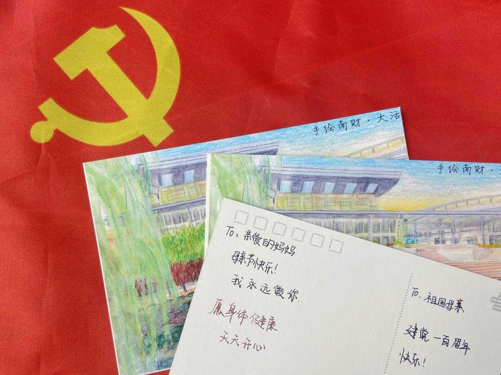 参与活动的同学在手绘校园明信片上写满对母亲想说的话,感谢母亲的养育之恩,表达对母亲的浓浓爱意和想念之情,同时写下对中国共产党这位母亲的情书,寄托对中国共产党的拳拳之情和100周年诞辰的祝福。同学们拿着一笔一画亲自书写的情书,找到与明信片上画面一样的校园名景点和党旗一起同框打卡,记录自己和学校和党旗在一起的美好时刻。