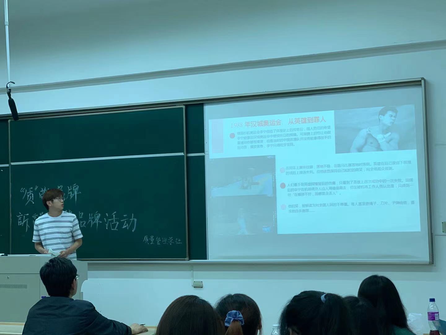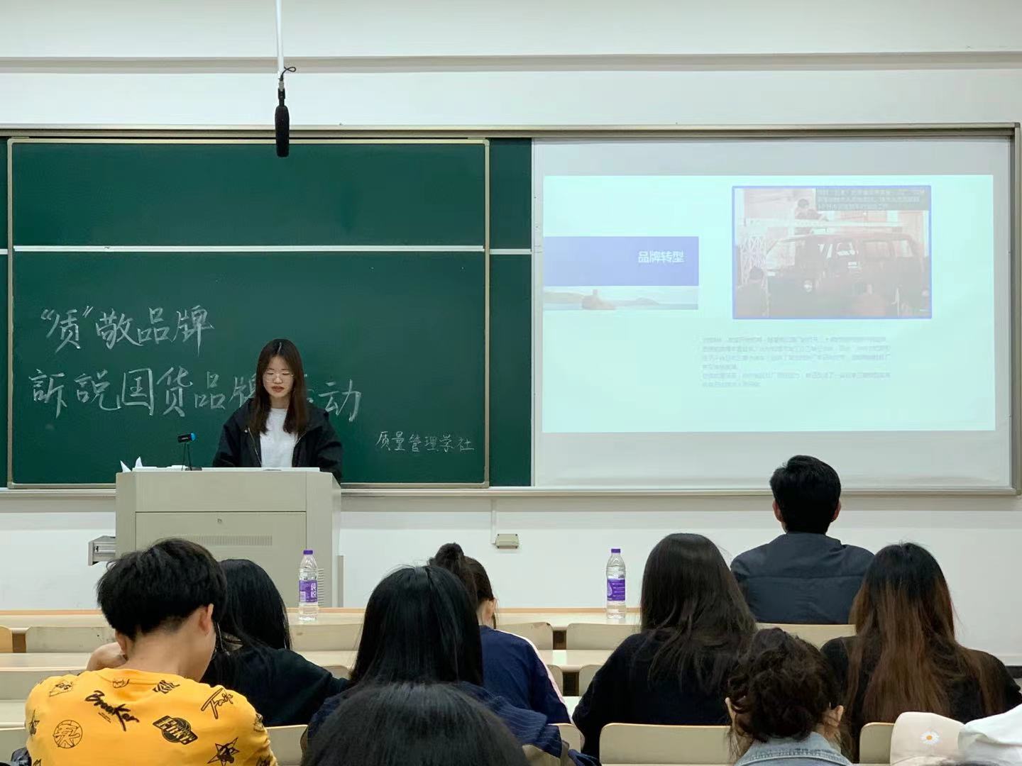 据悉,活动于5月1日便开始正式预热,社团成员先后在质量管理学社微信公众号上发布了三期诉说国货品牌故事系列推文,分别讲述了成员们挖掘整理的上海家化、五菱和茅台三个国货品牌故事,并发布了诉说品牌故事现场宣讲比赛的通知,大家积极转发宣传。5月6日前,收到了诸多同学的积极投稿,经过评审小组初步筛选,最后选定六组同学进入决赛。