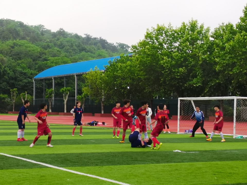 管工研究生联队在八强赛中稳定发挥,默契配合,双方你争我夺,高技术的动作点燃全场,最后平局以点球大战5:3的好成绩直击四强。在半决赛中更是顶住压力,面对上半场对方进球得分,迅速调整战术,取得球权迅速发起反击,随后9号孙杰以一记头球追平比分,最后险胜晋级决赛。