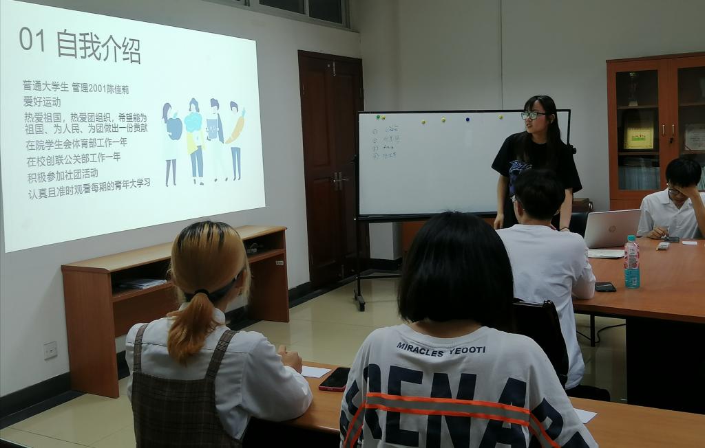 会议开始,首先是新发展团员选举投票,候选人为管理2001陈佳莉、管理2001付美琴、质管2001卢欣怡、质管2001刘婉怡。四位同学先后围绕自我简介、入团动机、获奖情况和志愿服务四方面进行了现场展示。经在场人员投票,选举质管2001卢欣怡同学为共青团的发展对象。随后,副书记葛瀚文针对青马班结业典礼进行详细总结,他指出了青马班结业结业典礼中出现的问题,并针对这些问题提出具体的解决方法。比如,应认真全面地阅读活动策划书,应注意活动的时间地点、活动流程间的关联、人员分工等等,并分享了一些处理突发情况的策略。至此,此次例会圆满结束。