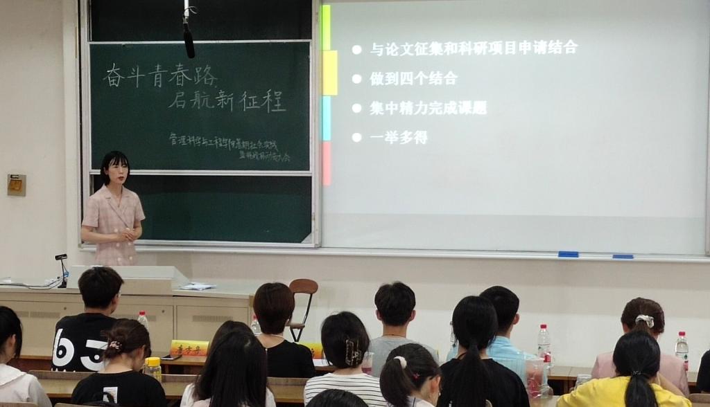 本次大会由吕嘉怡主持。大会开始,唐方舟老师做动员发言,她从往年暑期实践成果、要求和奖励细则、和其他项目的结合、选题方向四个方面详细介绍了暑期社会实践,并通过实例分析对如何选题给出了一些实质性建议。接着,工商管理学院曲晓波同学向同学们分享了参加挑战杯创新创业大赛与暑期社会实践两项赛事的感悟和经验,并着重向同学们讲述了如何撰写一份好的商业计划书、制作一份精美的ppt。管科1802的张宇柯同学结合自身参加挑战杯的经历,通过面试加入挑战杯团队的小故事道出了综合素养的重要性。管科1701的卞苏清和管科1802范云逸两位同学从不同角度详细介绍了暑期社会实践的不同环节,他们主要围绕媒体宣传、照片拍摄、新闻稿的撰写、总结报告的撰写四个方面分别展开论述。