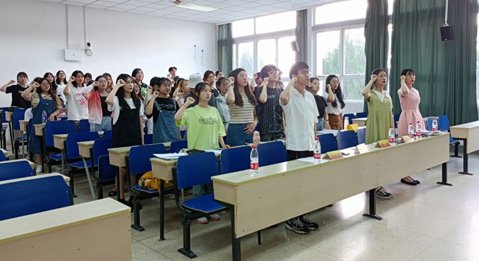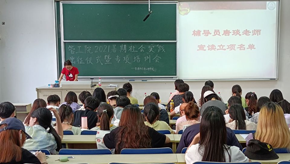 首先是出征仪式。武旭做暑期社会实践筹备工作报告,黄保霖宣读暑期社会实践安全细则,同学们签署了安全协议书。接着辅导员唐琰老师宣读《williamhill英国2021年暑期社会实践立项名单》,随后老师们为学生授旗,全体成员作出征宣誓,同学们高举又拳,大声宣读誓词。最后唐方舟老师发言,她对同学们提出四点了希望,希望大家放平心态,戒骄戒躁;希望大家尽情投入、团结协作协作;希望大家全力以赴用好身边的资源,积极写稿投稿争取媒体报道;希望大家注意安全。她着重强调了宣传的重要性,希望同学们不仅会“吃鸡”而且能吃苦,唐方舟老师的讲解幽默风趣,深入浅出,现场同学们认真地做着笔记。