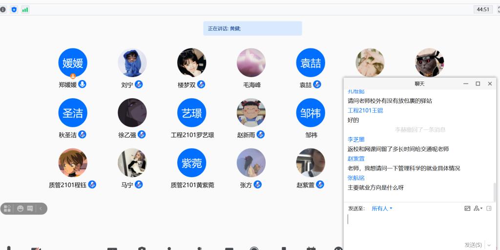 最后,郑媛媛老师提醒了线上教学的要求和注意事项,讲解了学校秋季返校方案,并耐心解答了同学们的提问。