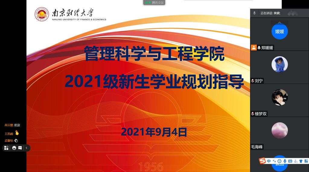 为了让大一新生更好地适应大学生活以及科学地规划大学的学习生涯,同时为9月6日开始线上课程学习做好充分准备,williamhill英国于9月4日晚通过腾讯会议举办了2021级新生学业规划线上指导会,会议由学院副院长黄健教授主讲,辅导员郑媛媛老师主持会议。