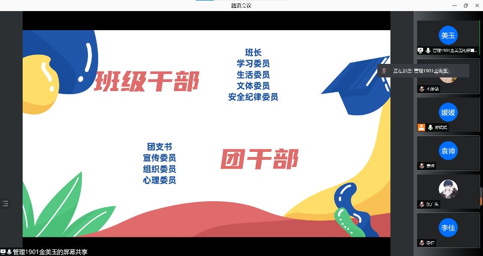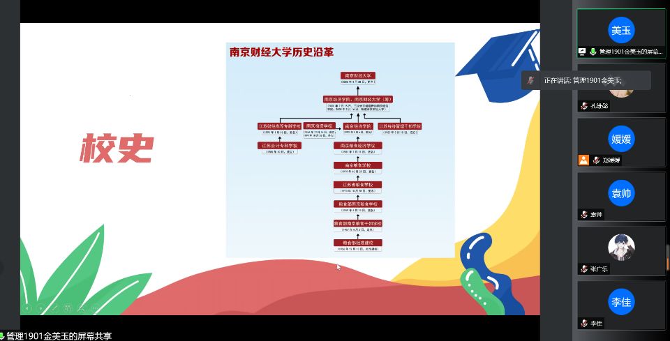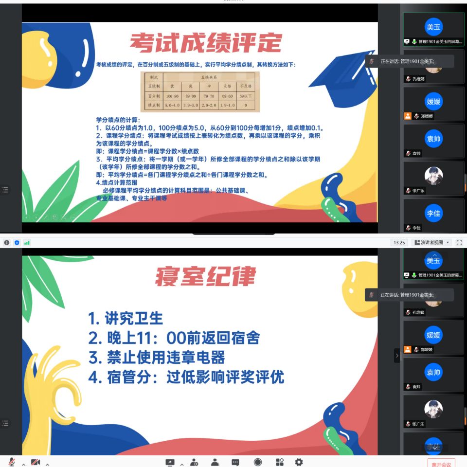 受疫情影响,经历了近一个月的等待,9月26日,2021级新生们终于如愿从祖国各地汇聚到南京,迈入英国威廉集团校园。9月27日晚,williamhill英国辅导员郑媛媛老师通过腾讯会议,为2021级这个大家庭举行了进校的第一次集体班会,会议邀请了管理1901班的学生党员金美玉分享南财学习生活的体验。