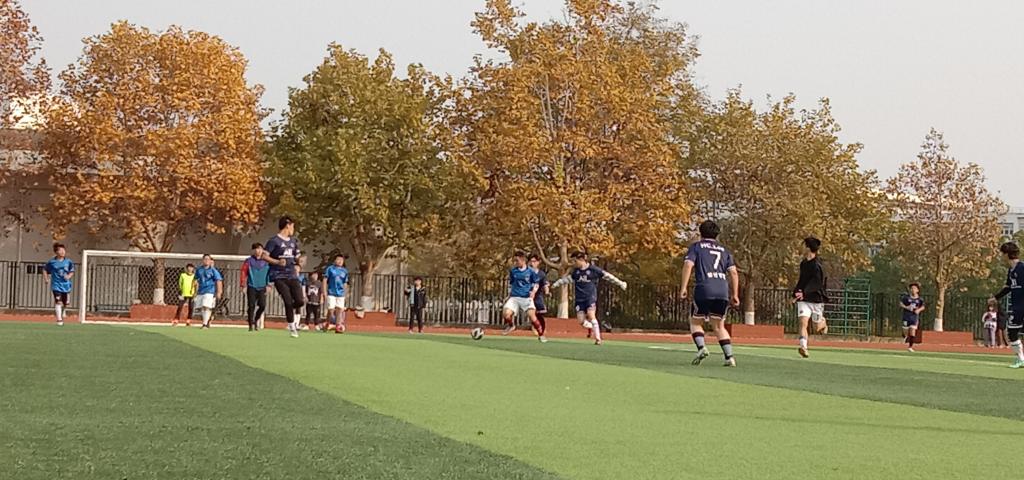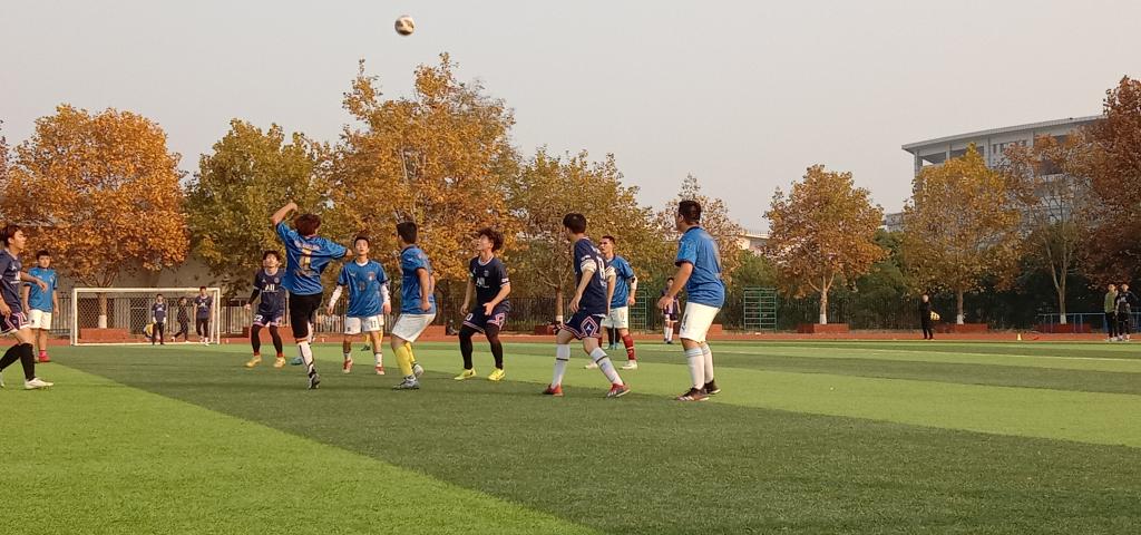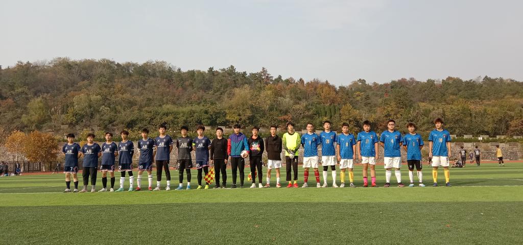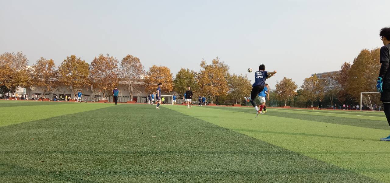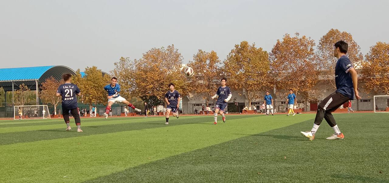 热身完毕队员们充满斗志地上场,伴随比赛开始的的哨响,激烈又刺激的上半场比赛开始了。双方队员展开了激烈的角逐,会计学院进行着严密的防守和密集的进攻,但管工院也不甘示弱,队员们默契配合着防守并抓住时机进行反攻,信工院未能进球。上半场时间流逝过半的时候,20号球员在接到队友的传球之后单刀直入连过几人最后选择远射,但由于力度大最终擦边而过。随后,会计学院意识到远射的威胁之后开始严防死守,比赛一度进入胶着状态。管工院数次进攻未果但也不气馁,依旧有条不紊的发起全力进攻。最后,以双方平局结束上半场比赛。
