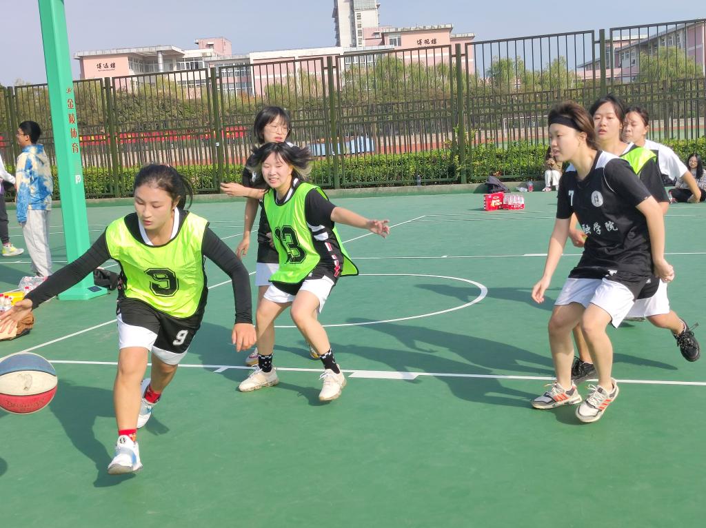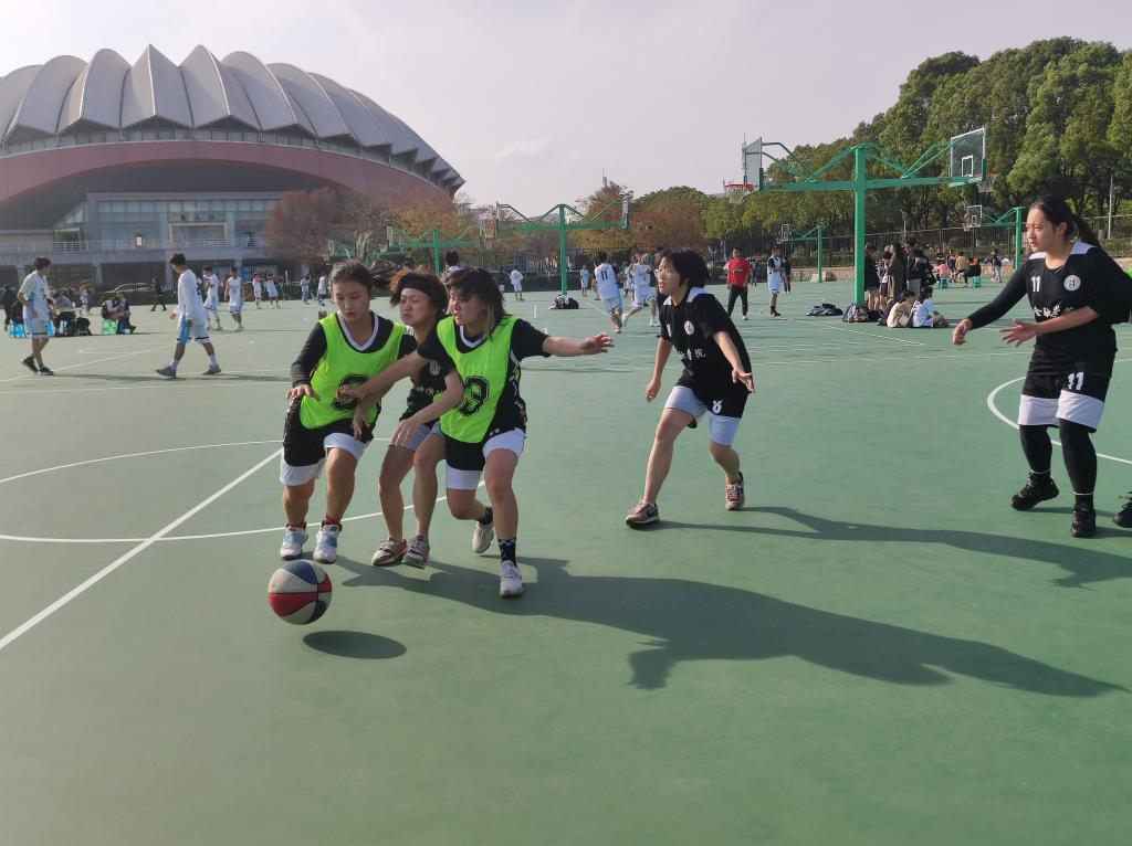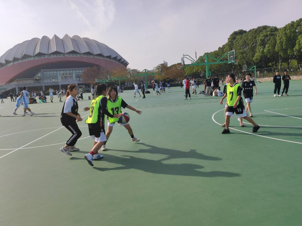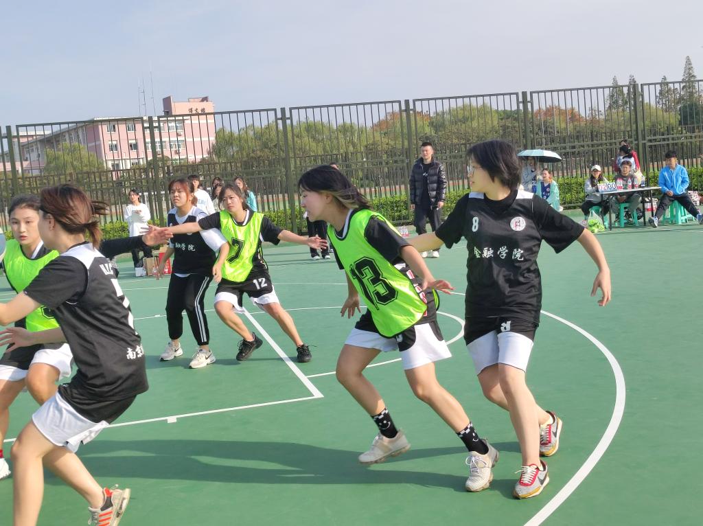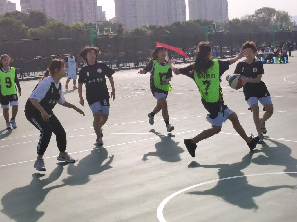 随着裁判员一声哨响,激动人心的比赛开始了!现场的气氛急剧攀升,双方很快进入了激烈的角逐,有纪律地进行进攻和防守,认真地盯着对手,等待着对方的失误,僵持不下,所有人都想率先投进球。终于,金融学院队员右侧出现疏漏,在所有人未反应过来之时,管工院的赵紫萱同学飞速从右方率先投入一球!管工院士气高涨,现场的气氛也开始活跃起来,观战人员纷纷为自己的队伍声援。金融学院队伍也很快意识到了问题,迅速地防守。抢球、传球、盯人、防守……很快地,在管工院孔维懿同学成功拦住对方抢球人员后,赵紫萱同学运球,迅速冲出阻拦,又投进一球!之后,金融学院叫暂停,更换人员,商讨战术,我方队员则调整好状态,不骄不躁,为之后的比赛做准备。