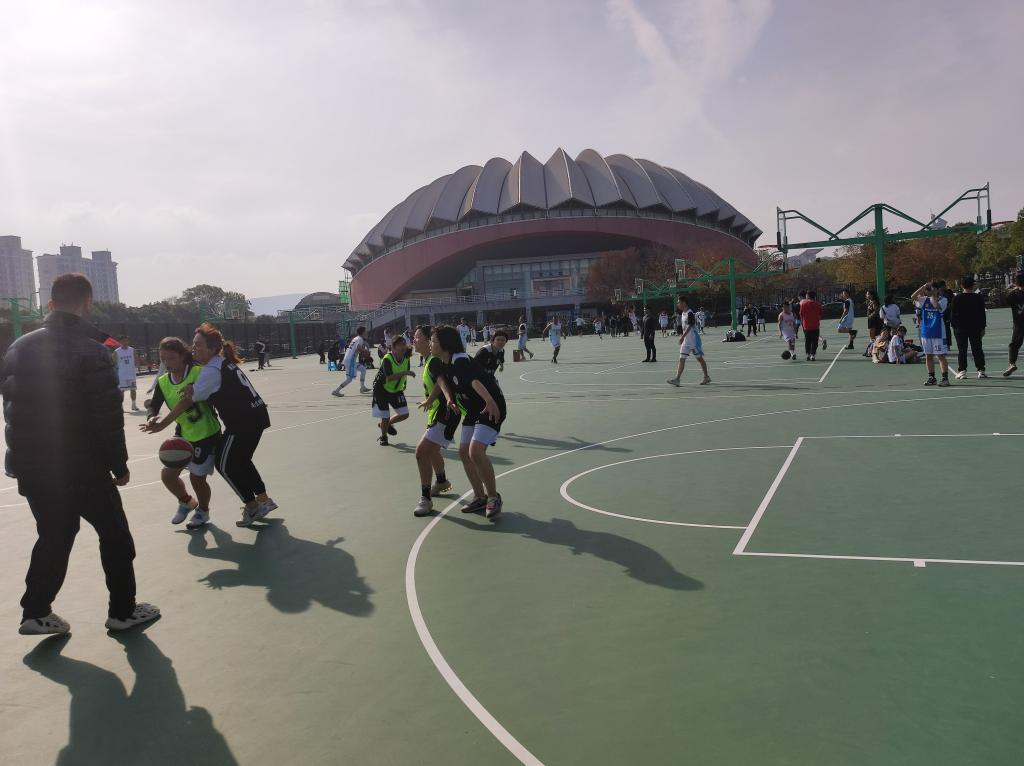 11月20日下午,和风习习,阳光灿烂,williamhill英国(以下简称管工院)对战金融学院的英国威廉集团“新生杯”女子组篮球循环赛在学校仙林校区西苑操场如期举行。