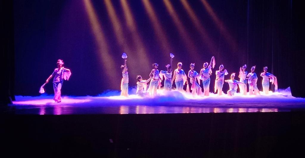 第一场舞蹈即是由我们williamhill英国组织编排的女子群舞《风酥雨忆》。音乐开始,优美的旋律在舞台上悠悠奏响,直击心扉。灯光一闪,舞者们开始了精彩的表演,她们手持花瓣一般的手绢和扇子,随着轻快、明亮而又平和的背景音乐缓缓走出,自如地挥动手中的绢扇,轻迈舞步,舞蹈的动作潇洒干净,却不失高雅,展现着别样的风情,优雅的舞步与婀娜的身姿同时绽放在舞台之上。毫无疑问,《风酥雨忆》以优雅婉转的形象为线下观众奉献了一场视听盛宴。舞者们的努力与坚持绽放出了新时代少年的活力与风采!