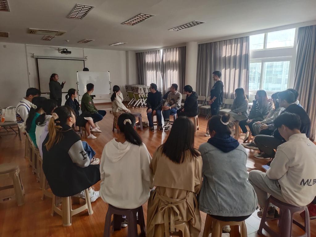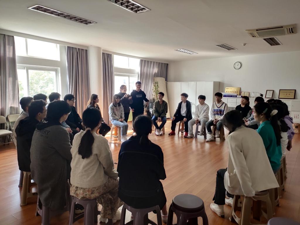 最后一个活动则是“大风吹”。大家围成一个圈坐下,根据不同的描述交换位置,没找到新位置的同学将接受惩罚。同学们都表现得很积极,灵活应对团辅小老师描述的“风”。