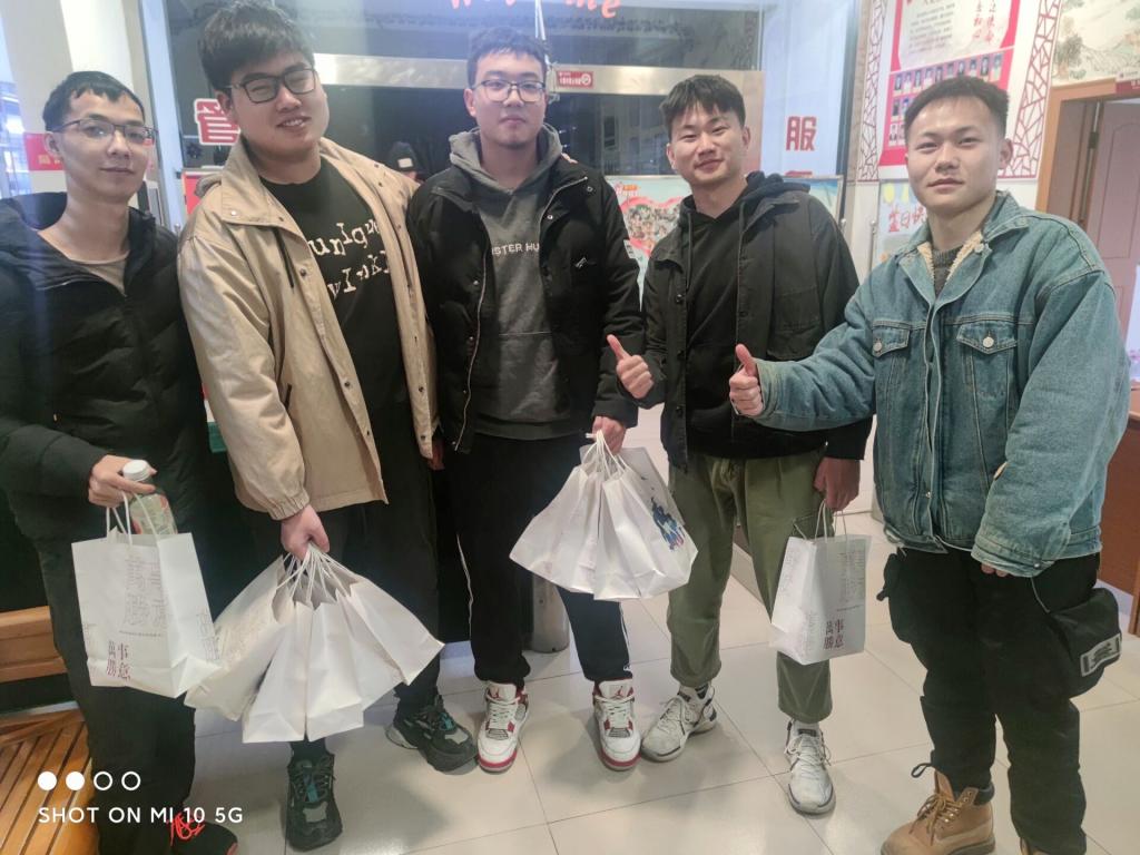 活动负责人黄宇涛同学感叹道:“学长学姐们考研有点像跑马拉松,非常考研人的意志力,现在已经是数九寒冬了,学长学姐们也都坚持早起,很不容易。希望他们调整好心态,吃好睡好,不急不躁,以最饱满的状态迎接考试,希望我们准备的小礼包能为学长学姐们带来小确幸!”为了不打扰学长学姐们复习,同学们来到宿管站门口,送去限定版礼包,考研学子们收到礼包后都很受鼓舞。