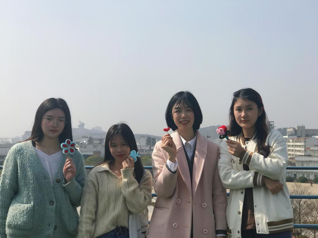 活动还有紧张刺激的飞花令环节,飞的是“花”字,大家分组pk,组员们争先恐后地答出含“花”字的诗句。“去年今日此门中,人面桃花相映红” “夜来风雨声,花落知多少”,“花间一壶酒,独酌无相亲” “杨花落尽子规啼,闻道龙标过五溪”“接天莲叶无穷碧,映日荷花别样红”......在清风徐徐的午后,伴随着梅花的清香,活动如火如荼地进行着。男生们在明信片上纷纷写下活动感想和祝福,送给女生们。“第一次接触绒花这个非物质文化遗产,制作过程很新奇很有趣,希望女生们都能幸福得像花儿一样!”“我觉得真是看起来容易做起来难啊,小小的一朵绒花,可是费了不少的心思。送你一朵小红花,祝你一直像花一样美丽动人。”……