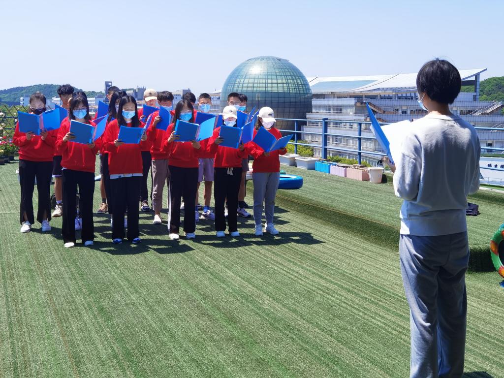 “母亲,倘若你梦中看见一只很小的白船儿,不要惊讶它无端入梦。这是你至爱的女儿含着泪叠的……”同学们身着红色院服,在洒满阳光的草坪上,饱含深情地诵读冰心的《纸船》。管理2101陈亦佳同学感叹道:“朗诵诗歌时,自己心里真的是百感交集,那一声声饱含深情的话语说出了我的心声,那正是我想对母亲诉说的千言万语。”