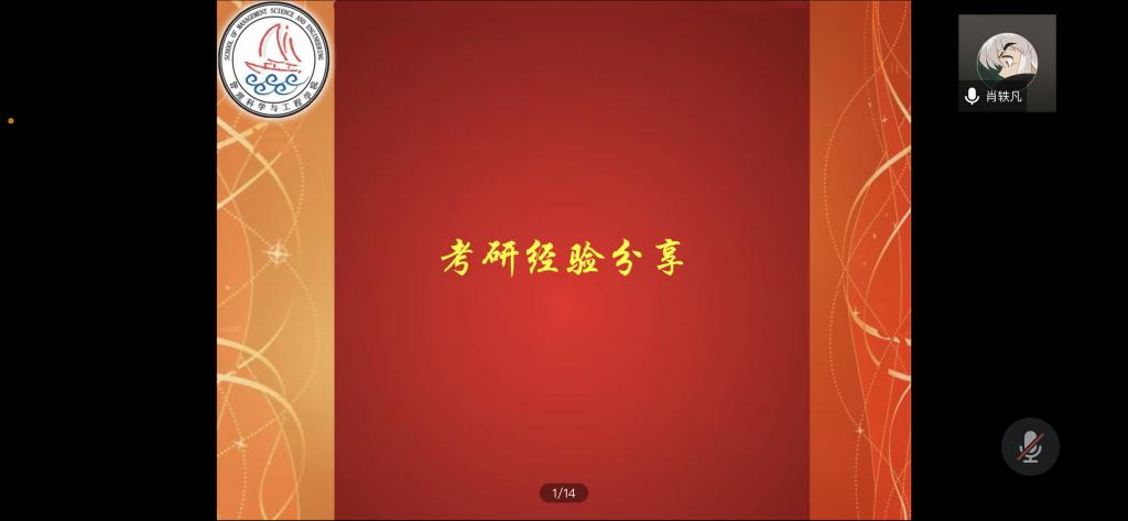 活动负责人管理2001黄志康同学说,本次交流会旨在为同学们考研出国提供朋辈经验分享,搭建一个沟通交流的有效平台,助力同学们成功备考。”