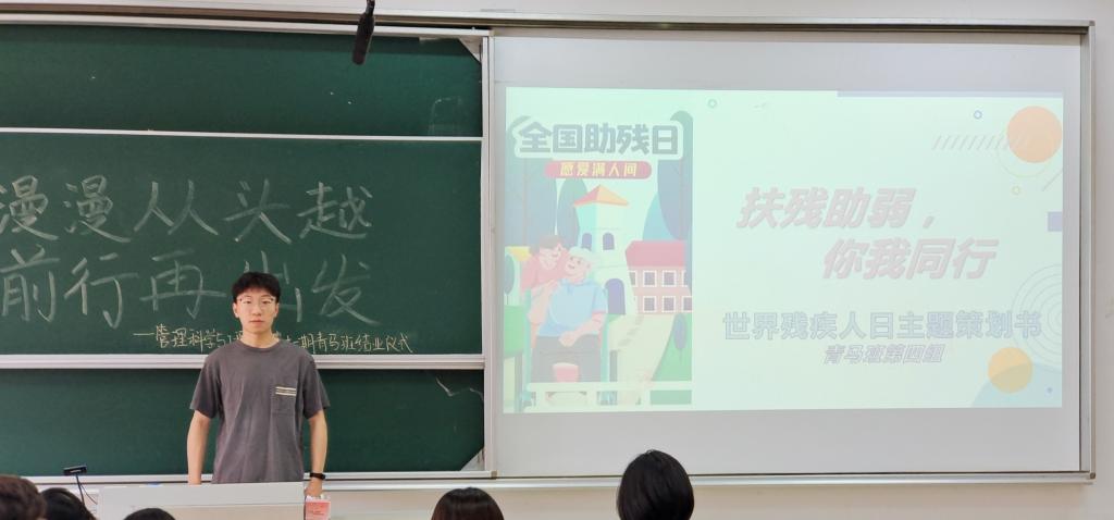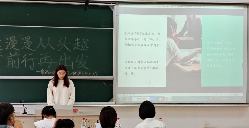 首先,十个小组先后围绕“世界残疾人日”主题策划书进行展示汇报。各小组的活动策划形式多样,或宏观或具体,有的策划构思精巧,别出心裁,富有新意,有的策划内容稍显粗糙,缺乏新意。