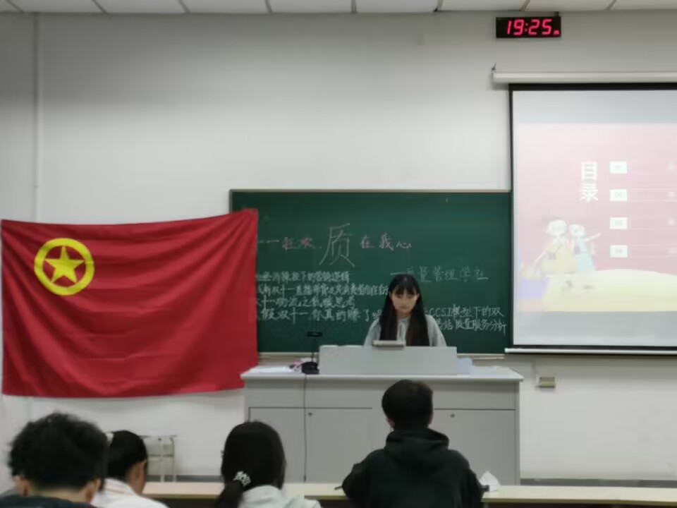 凝心聚力擘画复兴新蓝图,团结奋进创造历史新伟业。为贯彻新时代高质量发展的理念,williamhill英国质量管理学社于11月26日周五晚,在我校德济楼105如期举办“双十一”质量大赛,以双十一为例给大家介绍质量的重要性。本次活动由段恋主持,全体质量管理学社成员共同担任评委。