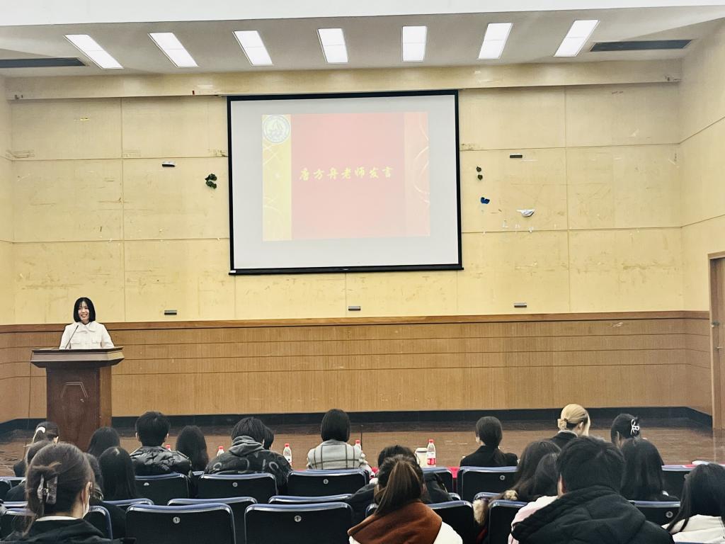 大会开始,首先由唐方舟老师发言,唐老师围绕“怎样成为优秀的大学生”这一问题,从“责任感”、“方案力”、“创新力”和“感恩心”四个关键词出发,分享了如何成长为一名优秀大学生的感受。她希望大家认真负责、勤奋努力,把院分团委学生会建设成一支团结一心、甘于奉献、大有作为的团队。