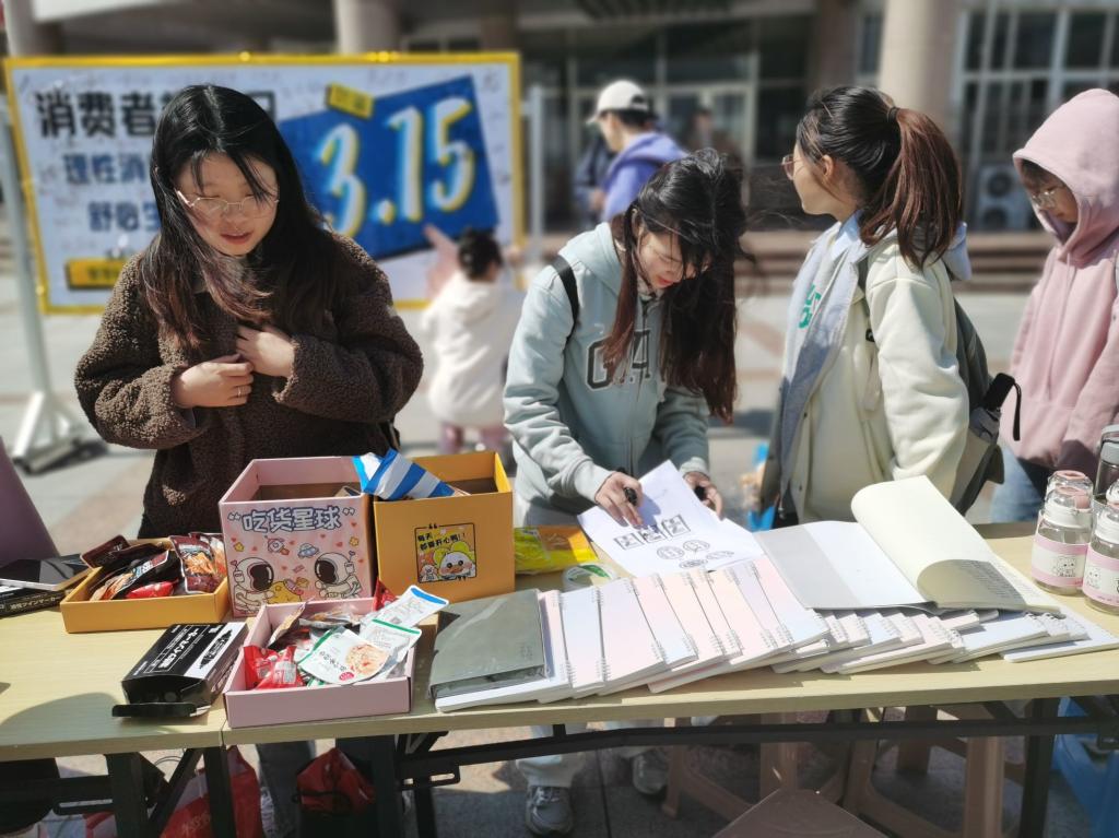 你了解315吗?你遭遇过消费侵权吗?当你遭受到侵权行为时又应该如何向商家说不呢?这些问题,与我们的生活息息相关。因此,我们围绕这些问题准备了多份趣味试卷,如“火眼金睛,真假商标找不同”“趣味问答,维权知识知多少”“商家的套路你知道吗?”……,以此考验同学们的维权知识。趣味的答题活动吸引了许多过路的同学,大家踊跃报名,认真思考消费小常识。在志愿者的引导下,不少参与的同学还分享了自己的消费小技巧,如购买商品时保留好消费凭证,若商品出现问题,便可通过凭证进行维权。一些答题较好的同学领到了小奖品,脸上洋溢着高兴的笑容。