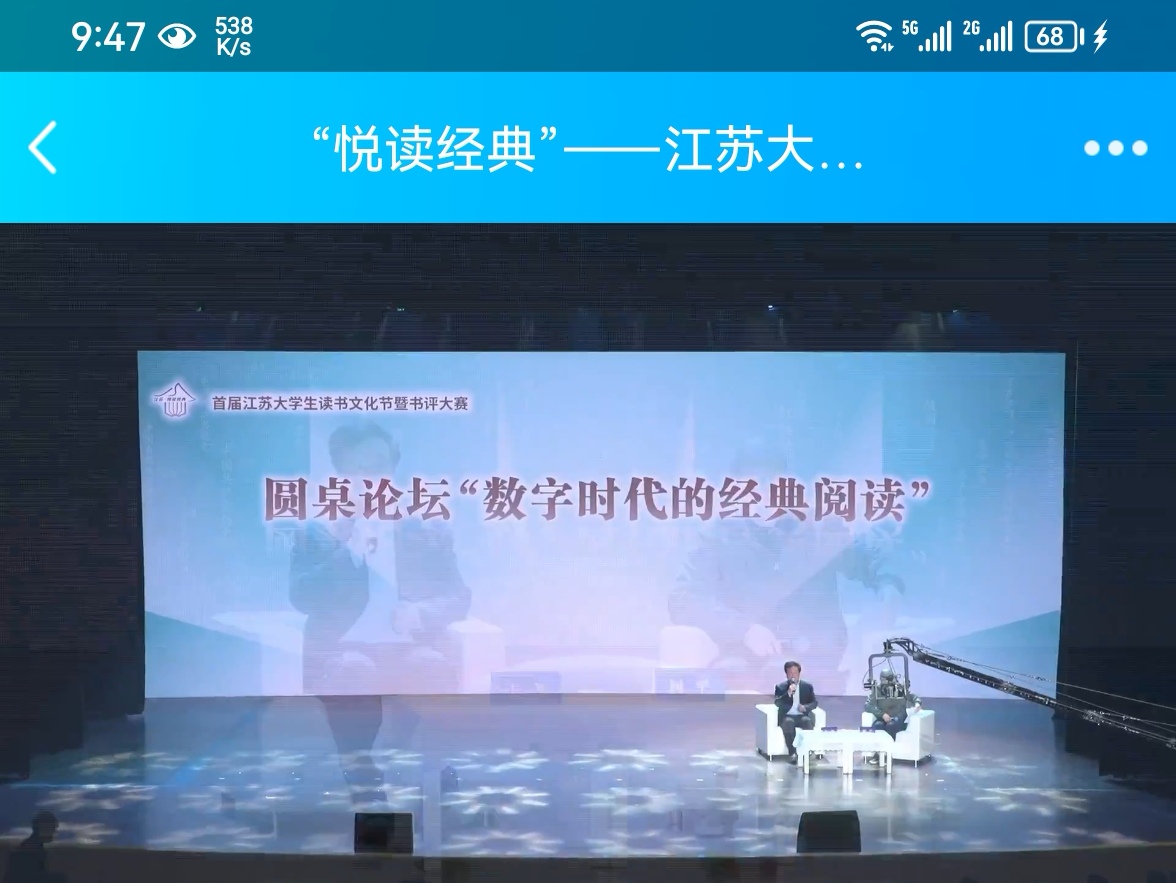 活动现场,朗诵节目《经典咏流传》从《诗经》到《楚辞》,从《论语》到《礼记.大学》,从《送孟浩然之广陵》到《念奴娇.赤壁怀古》,再到《横渠语录》,将中国古代诗词的美表达得淋漓尽致,听得人热血沸腾;舞蹈《云之上》的音乐优美,舞蹈婀娜多姿,演绎出曼妙少女的风情万种;《名师导读》著名教授畅谈读书要领,言简意赅,妙趣横生,听来忍不住赶紧捧起书来好好阅读;《圆桌论坛——数字时代的经典阅读》节目中,知名学者围坐一桌,侃侃而谈,让人深受启发。