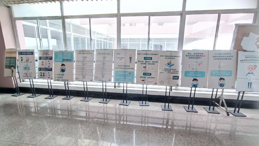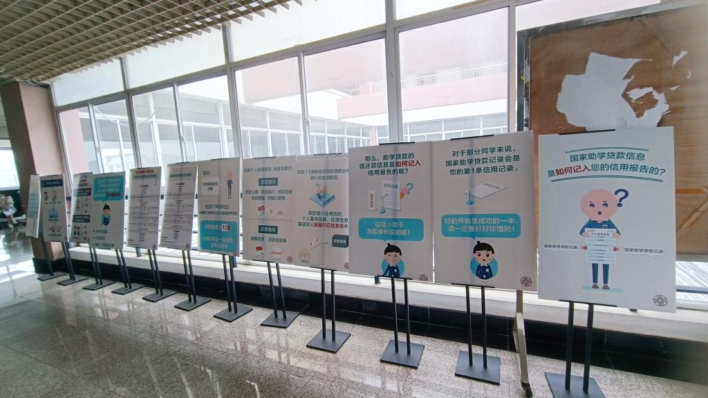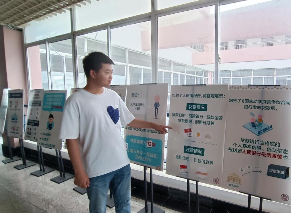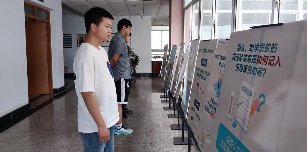 活动开始,主持人邀请现场同学一起观看学生资助诚信教育图片展,并结合展板内容详细介绍了国家助学贷款的资助政策和还款流程,接着,他对国家助学贷款的借还款信息是如何记入个人信用报告、助学贷款与一般性贷款的三项重要区别以及在贷款过程中需要联系学校和贷款银行的情况做了说明,他表示:“助学贷款信息生成的个人信用报告对我们的生活有着重要的影响,希望同学们增强诚信意识,办理助学贷款的同学要定期查询报告,按时足额还款,维护个人良好诚信记录。”最后,他向在场同学科普了防诈骗知识和金融安全知识。
