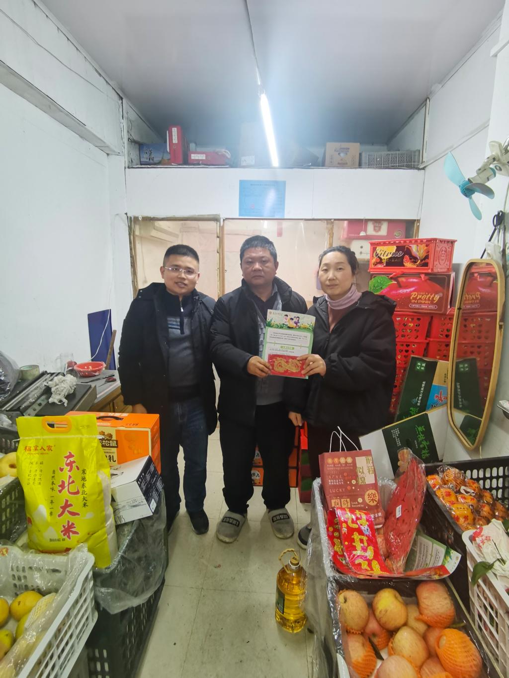 带一份慰问暖人心。受学院委托,陆秀军老师除了带去米油等生活用品,还带去了春联福字以及有学校文创特色的红包,既是传统节日的慰问又是学校的文化宣传,更传达了美好生活的祝福。