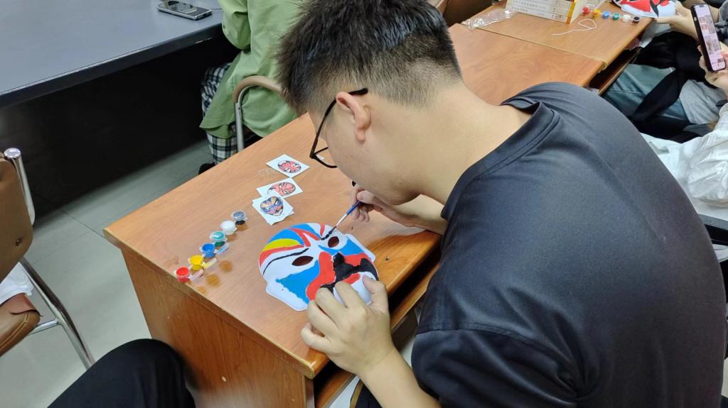 活动之初,同学们共同学习了习近平总书记关于加强文化遗产保护传承弘扬中华优秀传统文化的重要论述,充分认识到加强非物质文化遗产保护传承、把各民族优秀传统文化发扬光大的重要意义。接着各民族同学们进行了非遗脸谱绘画,以画脸谱的方式画出自己的人格面具,体验生命的多姿多彩和艺术的巧妙转换。