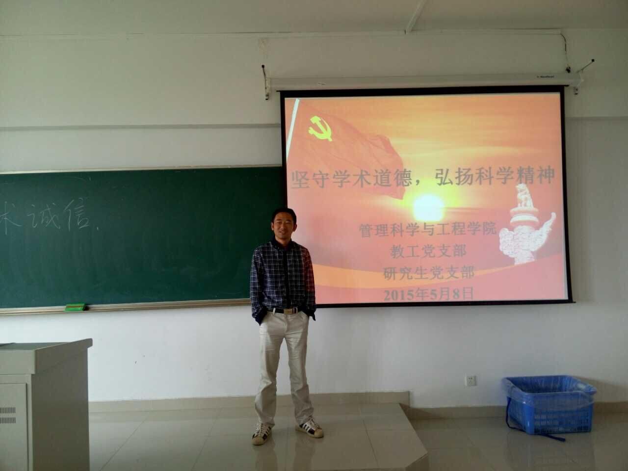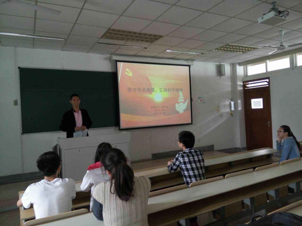5月29日,由管理科学与工程学院研究生党支部组织的诚信主题研讨会在管理科学楼509会议室和教学楼A408教室顺利举行。研讨会为期一天,主题为“社会主义核心价值观与学术道德科学精神建设”,上下午分别针对研一和研二学生开展。参加会议的有学院副院长唐润副教授和研究生党员与入党积极分子,与会师生就如何践行社会主义荣辱观,弘扬学术道德和科学精神进行了深入的研究和探讨。