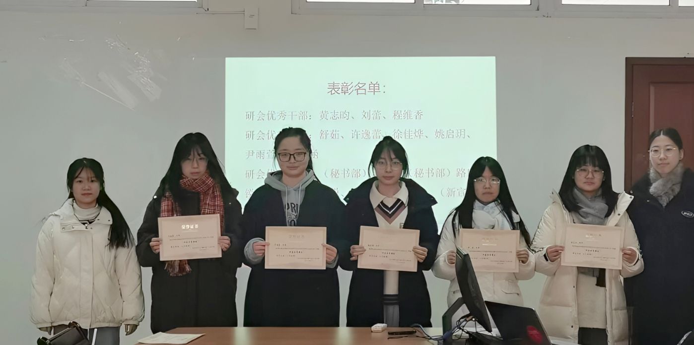 表彰环节中,主持人宣读年度先进工作个人名单,王卓君老师为获奖同学颁发荣誉证书并合影留念,激励全体成员以先进为榜样,在工作中勇担使命、争先创优。
