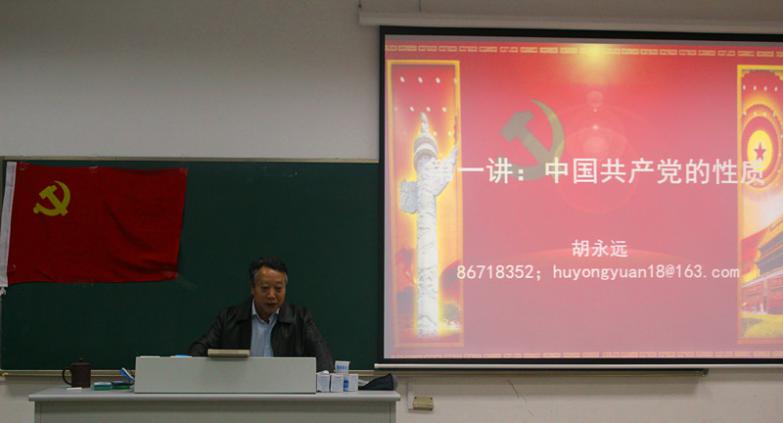 开班仪式结束后,胡永远书记为同学们进行了党的理论知识的授课,党课的内容包括第一讲“中国共产党的性质”和第二讲“中国共产党的纲领”。在课堂上,他向同学们讲述了政党的概念和演变历史,中国工人阶级的属性以及中国共产党的先进性。