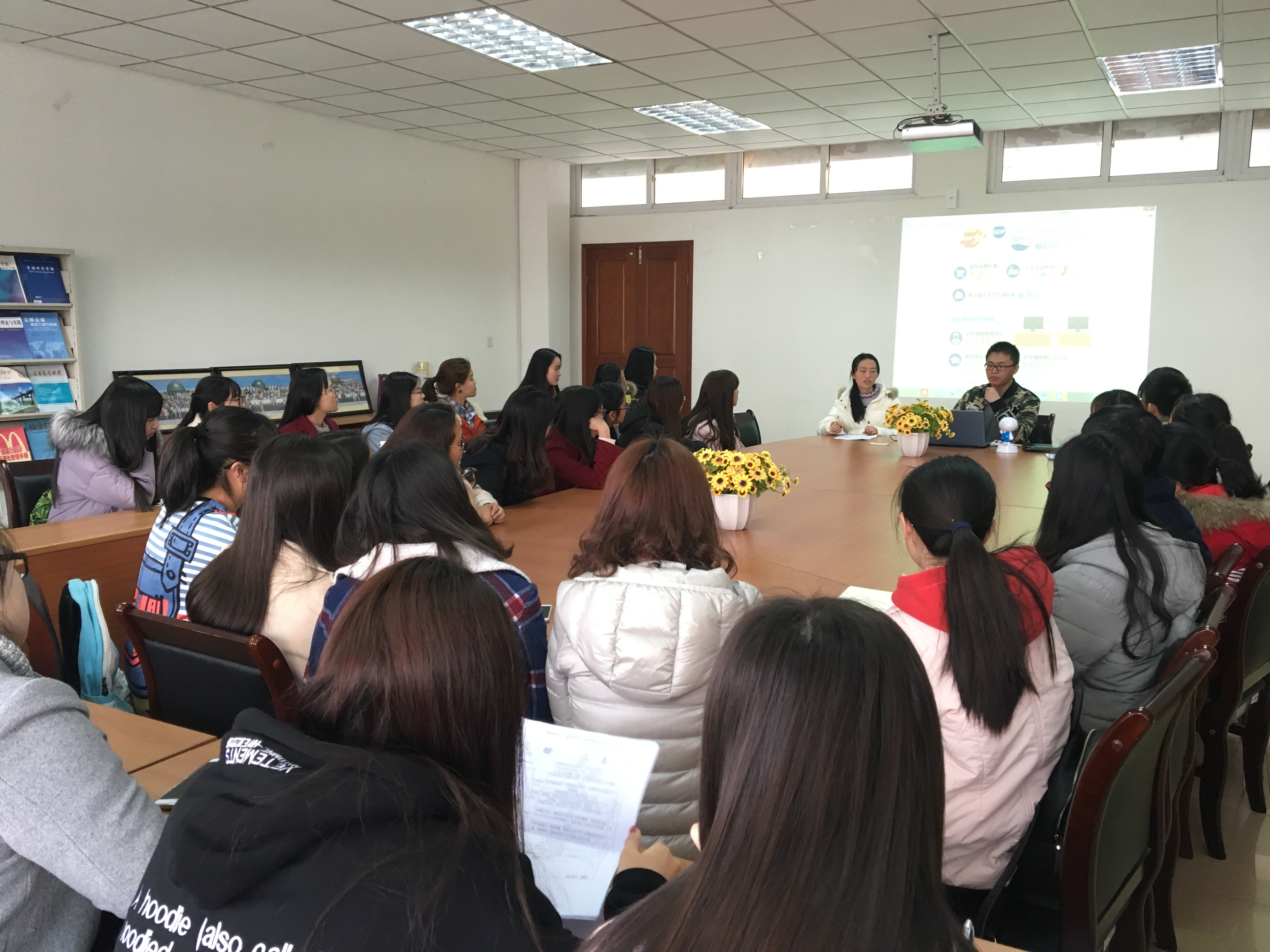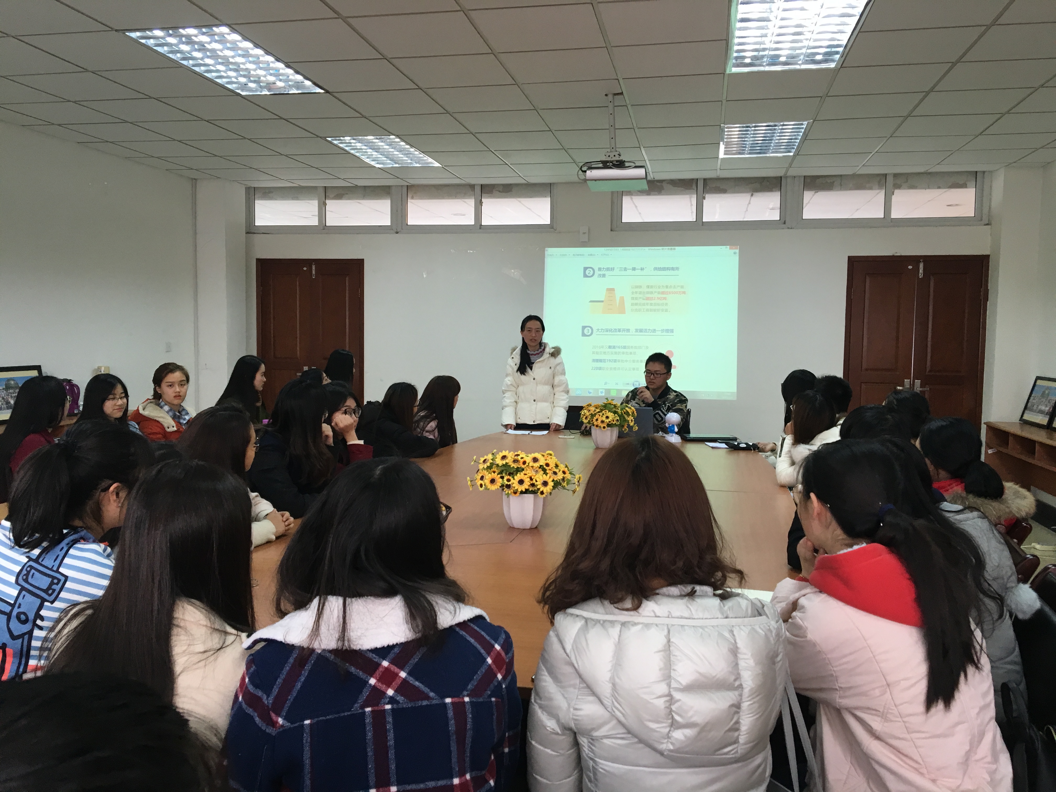 首先,郑老师说明了本次学习的内容和要求。紧接着,全体师生观看了国务院总理李克强的政府工作报告,报告系统地总结了“十三五”的开局之年政府各项工作取得的成效,深入分析了2017年国家面临的机遇与挑战,并客观陈述了对2017年国家在经济发展、深化改革、扩大开放、生态治理、民生改善以及政府自身建设等九个方面的部署,政府的各项举措都体现了党的根本宗旨,鼓舞人心,令人振奋。随后,沈宗礼同学简单讲解了两会关键词:GDP增速6.5%左右、对外开放、外商投资环境、自贸区、去产能、僵尸企业、网络提速降费、消费、双创、中国制造2025等。学习结束后,同学们热烈讨论,并发表感想。会后,全体学生党员及党的发展对象通过短信、邮件、微信等多种方式,表达了对本次学习的心得体会,由支部委员进行整理并分享。