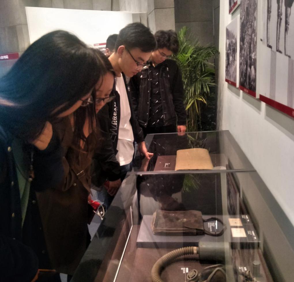 纪念馆外观呈“木船”形状,象征“驶向胜利之船”。走近纪念馆,映入眼帘的是一幅刻着人民解放军战士奋力渡江场景的大型浮雕,同学们仿佛回到了1949年4月人民解放军“百万雄师过大江”的渡江战役。馆内共展示了各类文物和复制品400余件,历史照片500余幅,分“风雨苍黄”、“天翻地覆”、“人间正道”、“胜利之都”四个部分。学员们一边观看珍贵的文献资料和物件,一边认真聆听馆内老革命对渡江战役历史片段的回忆讲解。参观结束后,全体学员坐在一起交流心得,最后在渡江胜利纪念馆前合影留念。