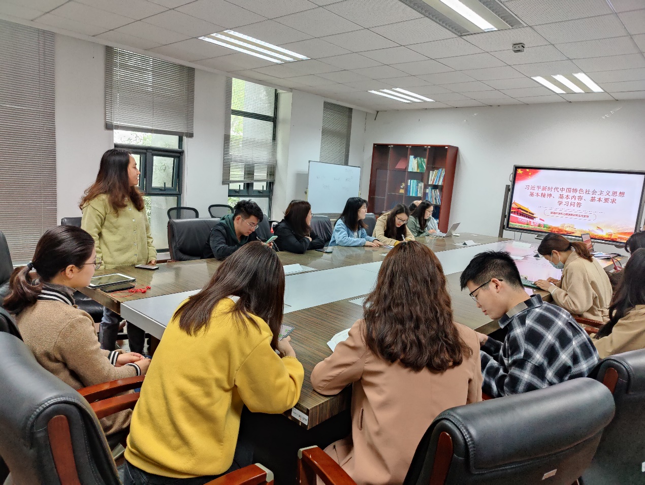 支部书记吴筱月首先强调本次集中学习的目的和要求,并简单介绍《问答》一书的组成部分和主要内容,指出此书是深入学习贯彻习近平新时代中国特色社会主义思想的重要辅助读物,全体党员同志应认真学习。然后全体党员主要就两个方面问题进行集中学习:一是如何理解习近平新时代中国特色社会主义思想是当代中国马克思主义、21世纪马克思主义?二是如何理解习近平新时代中国特色社会主义思想创立的时代背景?全体党员就这两个问题进行集中学习讨论,部分党员发言表达学习体会与感悟。