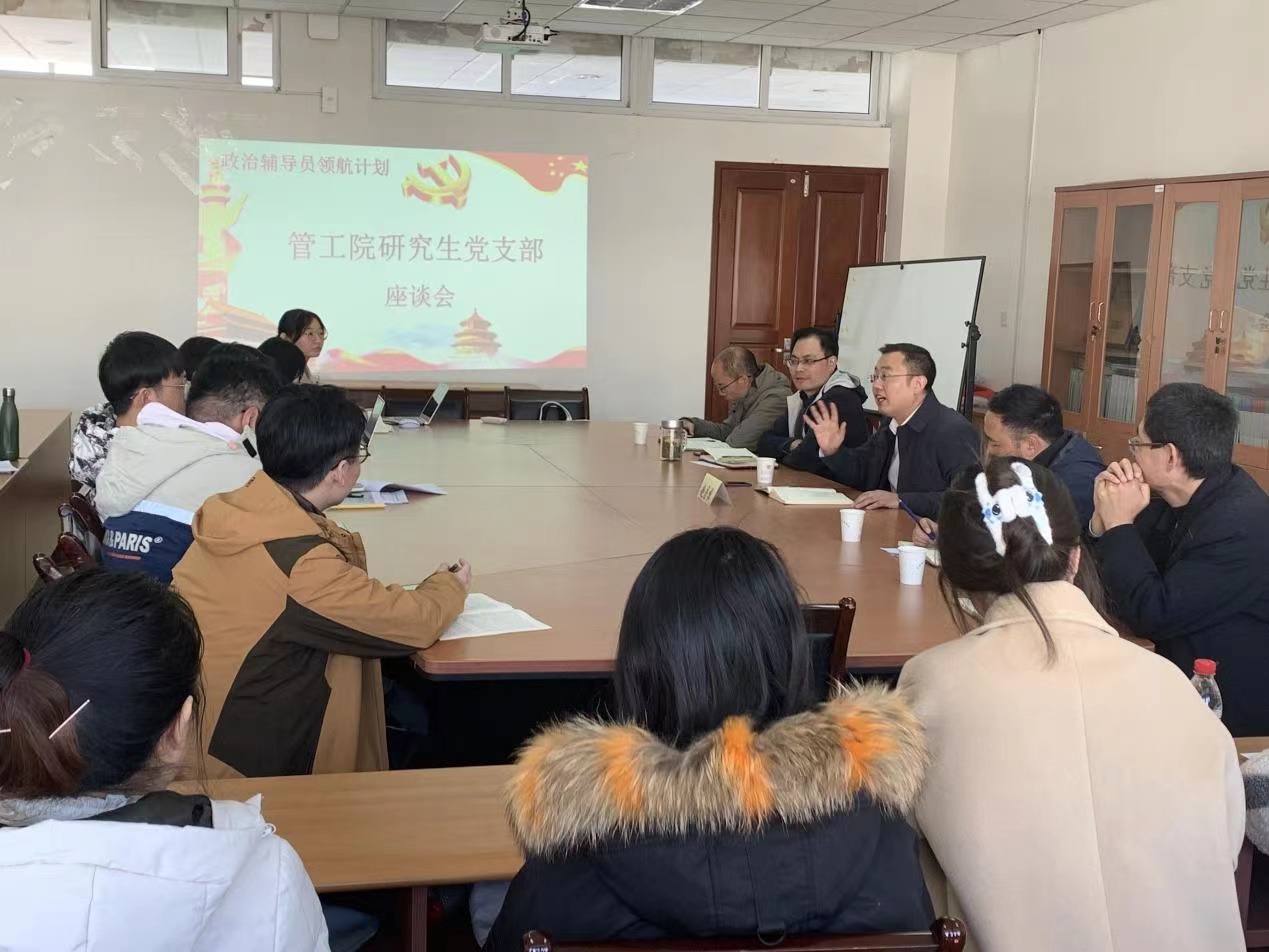 11月24日下午15:30,为充分发挥政治辅导员引领作用,进一步深化“两在两同”建新功行动,深入了解学生需求并提供帮助。校党委常委、组织部部长赵国栋同志在德济楼507会议室与管工院研究生党支部党员一起座谈。参会人员包括管工院党总支书记倪明、副院长黄健、副院长唐润、教工党支部书记张庆民以及全体研究生党员。