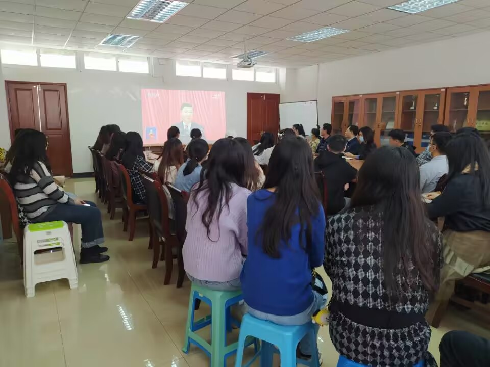2022年10月16日上午,学院党总支书记倪明、党总支副书记孙启、教工党支部书记张庆民、副书记沙敏、本科生党支部书记郑媛媛、研究生党支部书记刘晓,本科生党员和研究生党员,在德济楼507会议室,共同观看中国共产党第二十次全国代表大会开幕会现场直播,认真聆听习近平总书记代表第十九届中央委员会向大会作的报告。