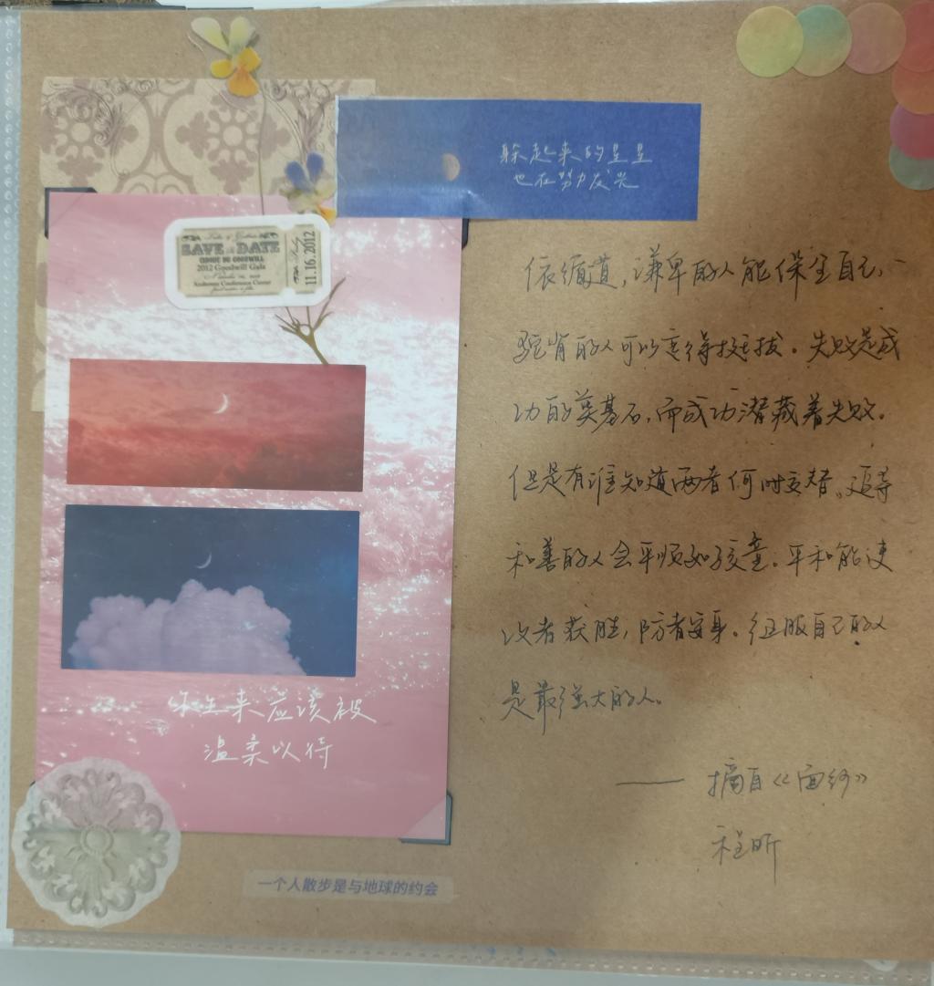 会议伊始,朱诗颖、曲俊衡、洪柔嘉等三位党员依次诵读了《中国人的精神》、《百年孤独》和《哲学的慰藉》美文片段,并分享阅读感想与心得,激发了在座党员的阅读热情。随后,支部开展自制摘要录的实践活动,在座党员结合自身构思积极参与制作,组织委员程昕将摘录页装订成册,供党员欣赏交流。最后,支部书记李艳分发活动纪念品u盘,并表示希望党员同志能够不断从书中汲取知识,补足精神之钙,筑牢信仰之基。