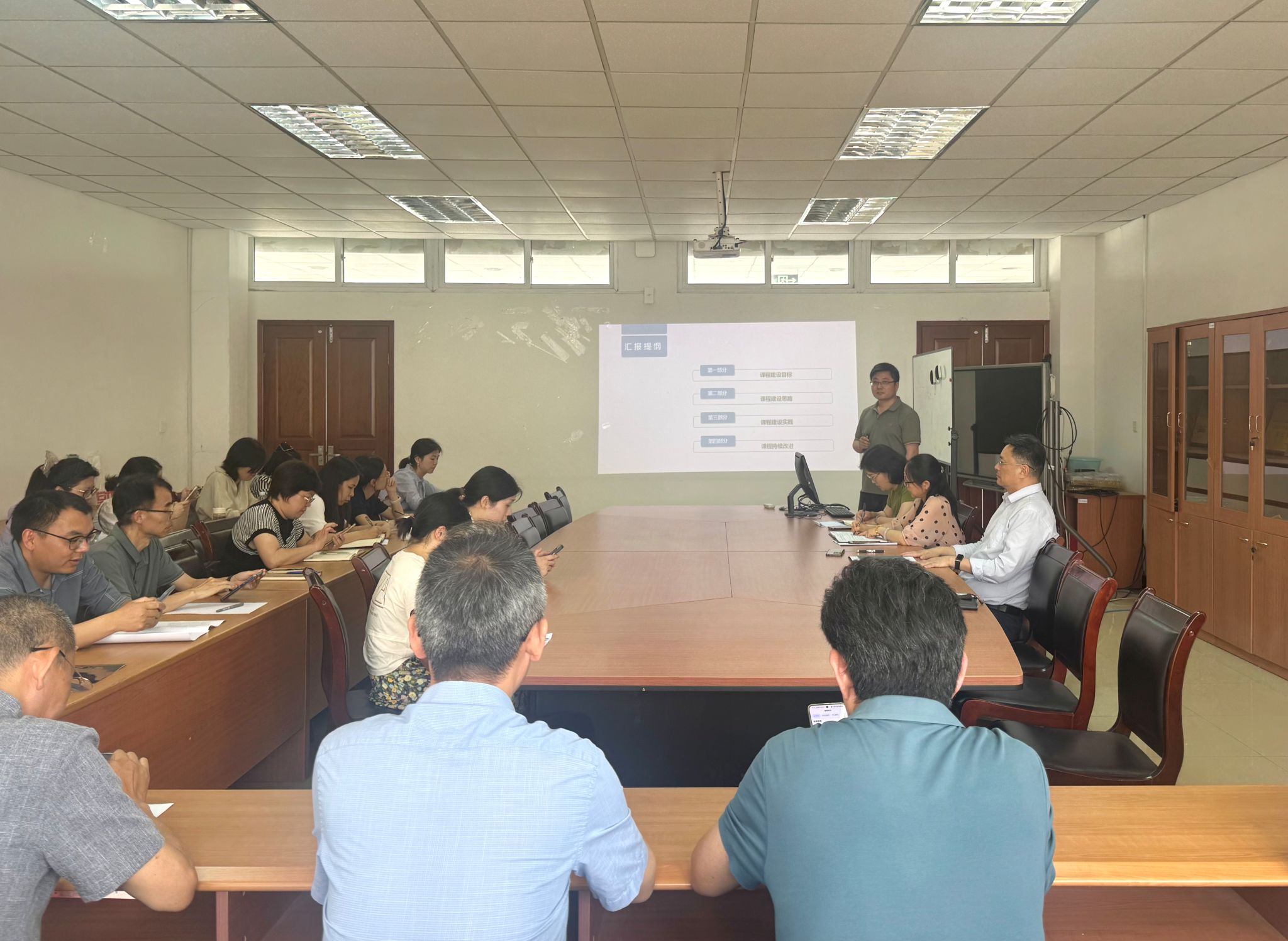 活动中,张正勇老师以《仪器分析概论》课程为切入点,从“课程建设目标、建设思路、实践路径及持续改进”四个维度系统阐释了课程改革的核心理念。他强调,在智能技术快速迭代的背景下,课程需以“产业需求为导向、能力培养为核心”,将企业真实项目与科研案例融入教学,凸显产教协同的育人价值。课程讲解结束后,学院任课教师张庆民、孙树垒就张正勇老师主讲的内容进行了点评及提问;青年教师苏本涛、李文丽先后结合本人教学过程中遇到的相关问题,分享了参与观摩活动的心得体会。
