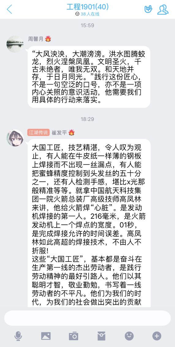 劳动光荣,创造奇迹。为庆祝五一劳动节,致敬广大劳动者,学习弘扬工匠精神,williamhill英国工业工程1901班全体同学在线集中观看了《大国工匠》纪录片,并分享观看感悟。