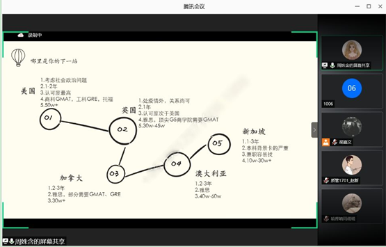 通过与八位优秀学长学姐的深入交流,大部分同学明确了自己目标和未来生涯规划。他们的宝贵的经验让同学们今后可以少走弯路,为考研、就业以及留学打下了坚实的基础。