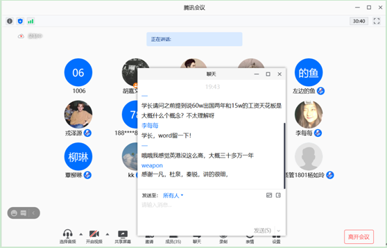 11月17日晚,我院质管1801班依托腾讯会议平台依次举办了考研、出国、就业三场经验交流会。目前,作为已经步入大三的同学们,正处于对未来发展道路的抉择期。为了让大家不盲目、不盲从,有针对性地备战考研、合理择校,规避找工作时的各种碰壁,应班主任王月虎老师的邀请,我院2015级与2017级的部分优秀学长学姐就上述话题分享了宝贵经验。本次交流会由胡嘉文同学主持。