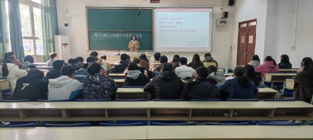 随后,各班代表分享经验。管理2101班李悦同学从自我介绍开始引入到自身的工作经验分享,包括重视团体、敢于发言、及时反馈和责任担当四个方面。李悦同学还从运动、美食、休闲三个维度分享自己的生活经验,鼓励同学们热爱生活。最后还希望同学们学会和自己相处,不要害怕孤独,健康生活,热爱自己。