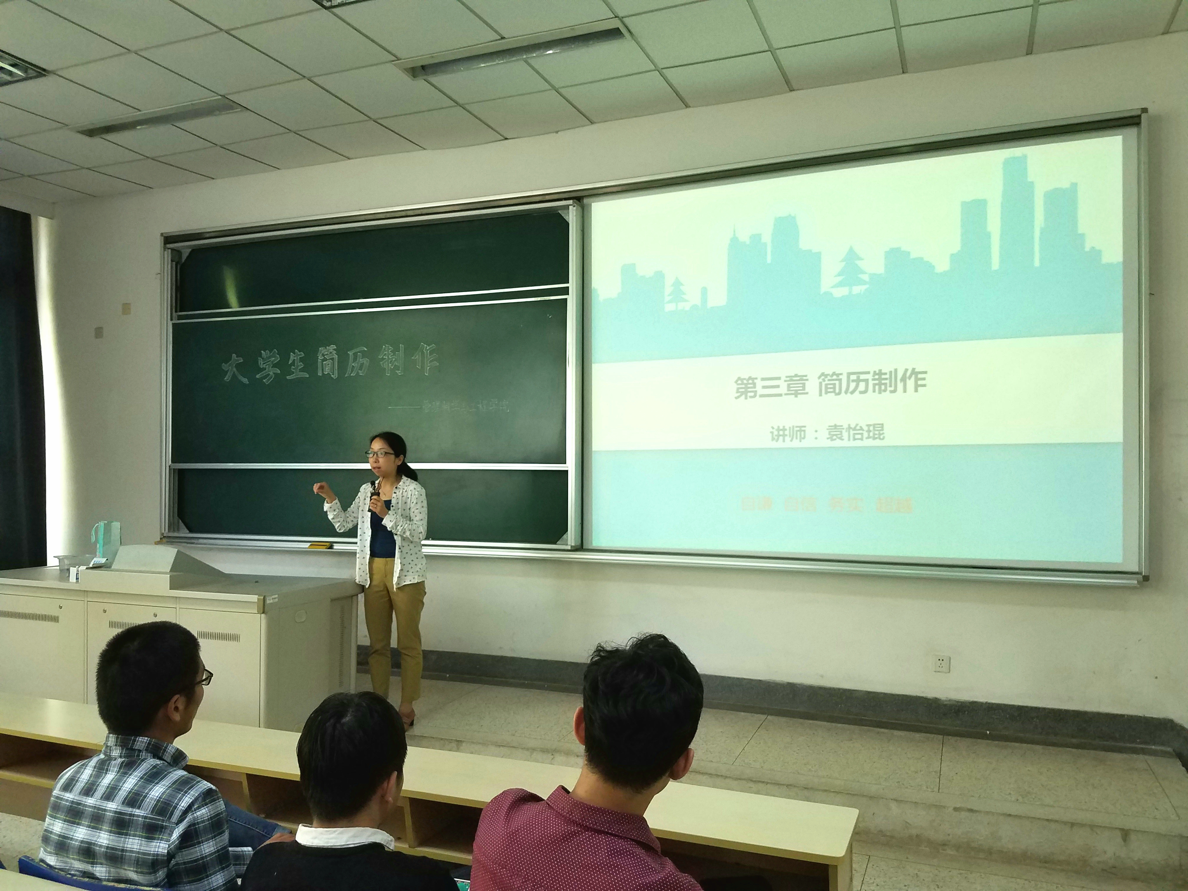 暑期将至, 2018届毕业生即将开启暑期实习之旅。为了增强简历的制作水平,培养了同学们简历制作的基本技能,增强竞争力, 5月24日下午2:00,williamhill英国党总支副书记袁怡琨老师在管理学科楼103教室为该院同学进行了一场“大学生简历制作”培训。