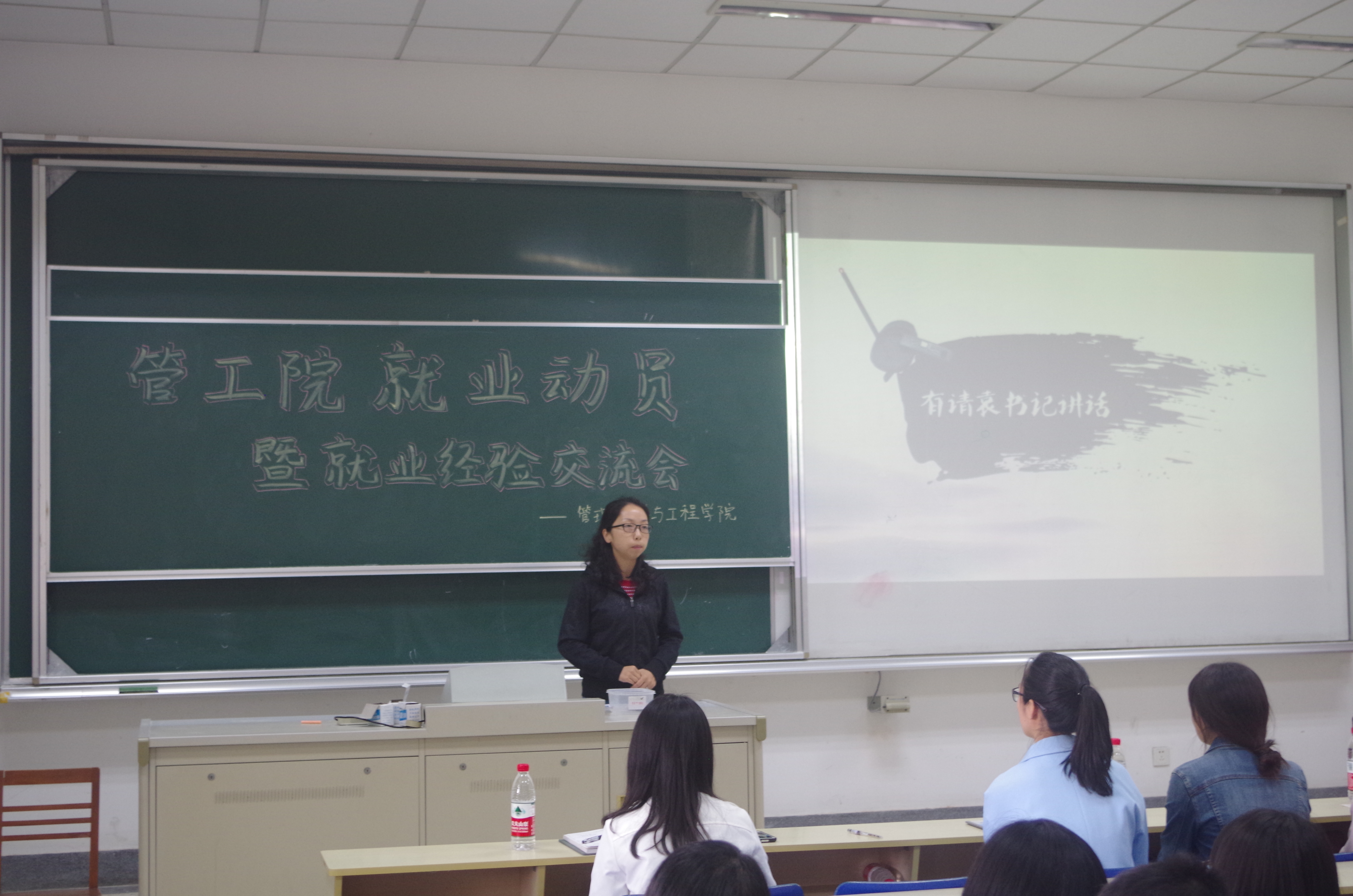 首先,袁怡琨书记做就业动员。她针对毕业与就业的关系、求职的心态、安全这三方面的问题进行阐述。