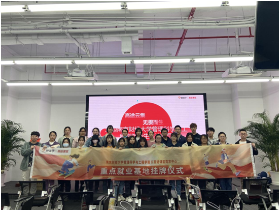签约仪式后,在工作人员的引导下,师生一行人参观了南京跟谁学|高途课堂的办公区域和教学直播间,感受到集团的雄厚实力和专业品质;健身房、休息室等设施齐备,体现了企业对员工的人文关怀。最后,全体人员回到会场合影留念。