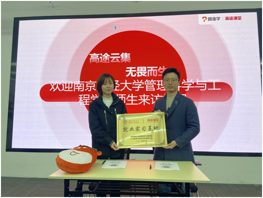 首先,校园招聘部负责人王琦向学院师生进行招聘宣讲,她详细介绍了南京跟谁学|高途课堂的发展过程、企业实力、企业文化、工作环境、招聘岗位和薪资福利等。随后,孙启副书记与招聘部负责人王琦进行了现场交流,并达成了合作意向,举行了签约仪式。