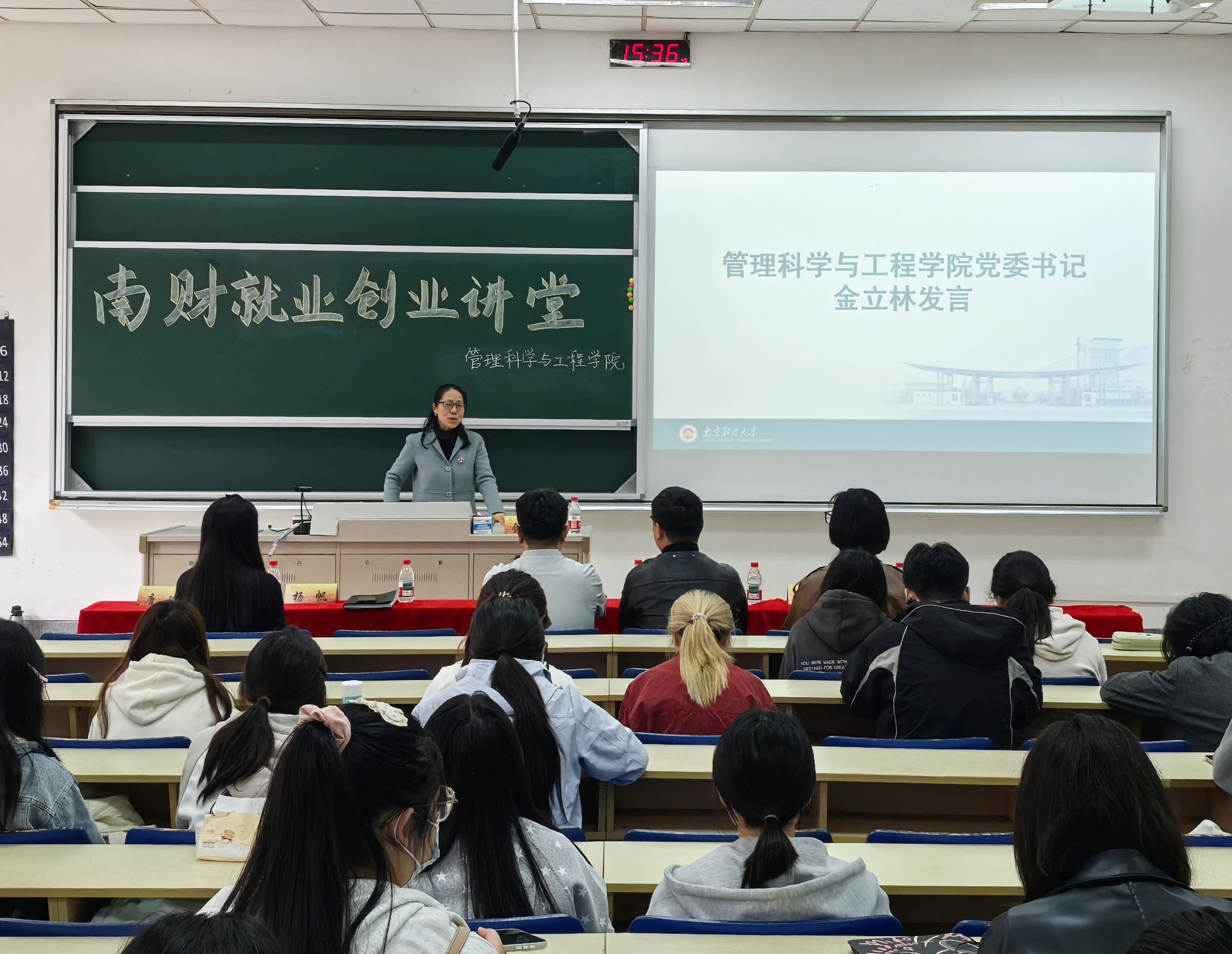 最后,金立林书记做总结发言。她对孙煜华先生的精彩分享表示感谢,认为本次讲座视角新颖、思想深刻,从哲学维度解析人工智能,对学生专业认知提升与职业规划具有重要指导意义。她勉励同学们立足当下、夯实基础,主动对接人工智能时代发展需求,为未来就业创业做好充分准备。